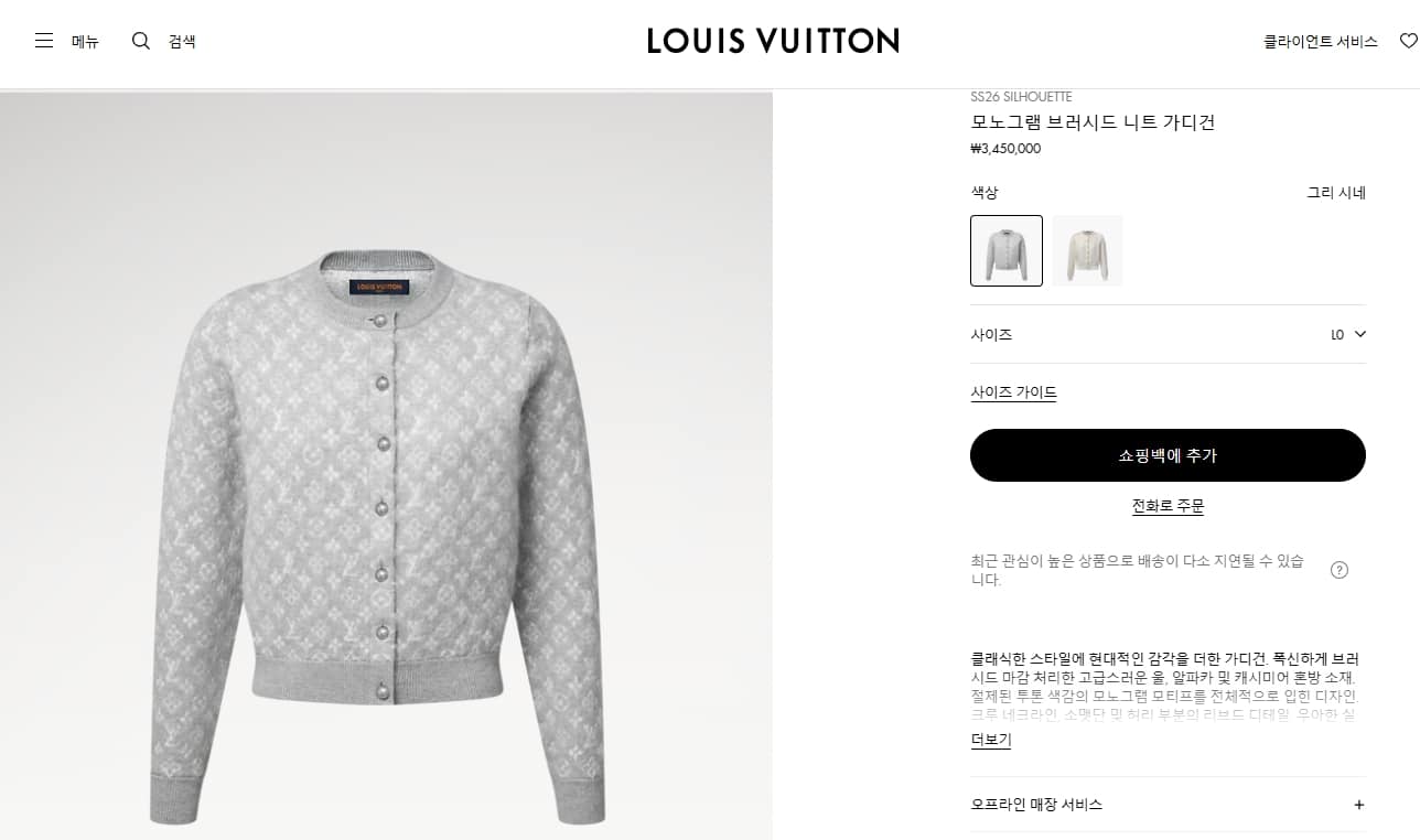 “[루이비통] 모노그램 브러시드 니트 가디건 1AJFS3”의 첫 상품평을 남겨 주세요