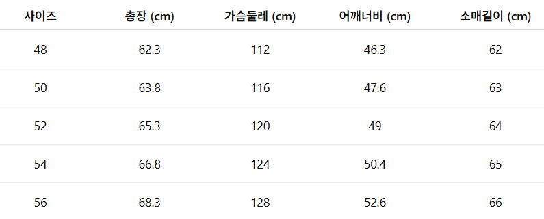 사이즈: 48 / 50 / 52 / 54 / 56