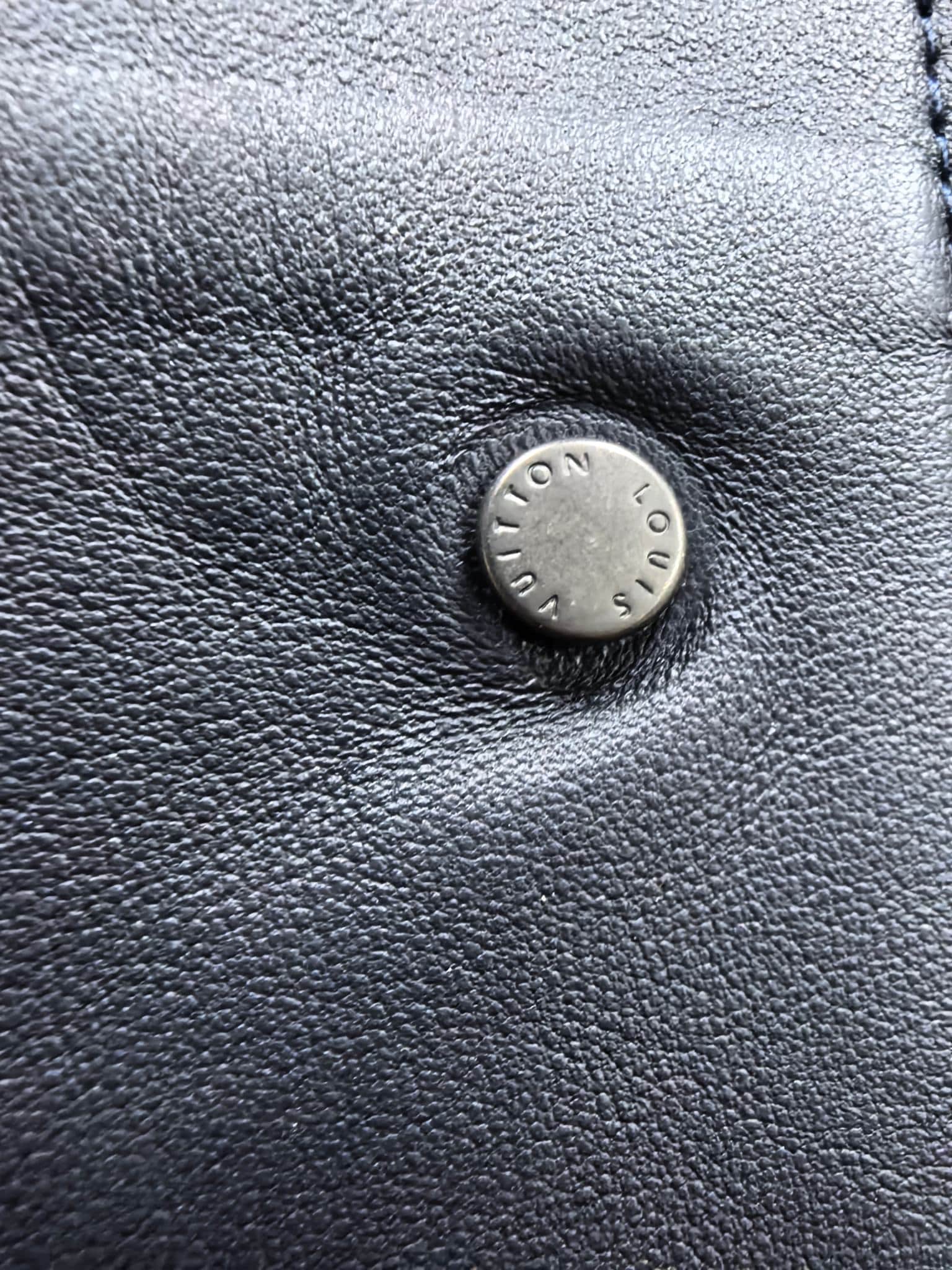디테일: 스냅 버튼 클로징, 엠보싱 LV 로고 패치, 소매 모노그램 엠블럼, 백 삼각 패널 스티치 디테일, 맞춤형 하드웨어 & 금속 로고 플래그 라벨