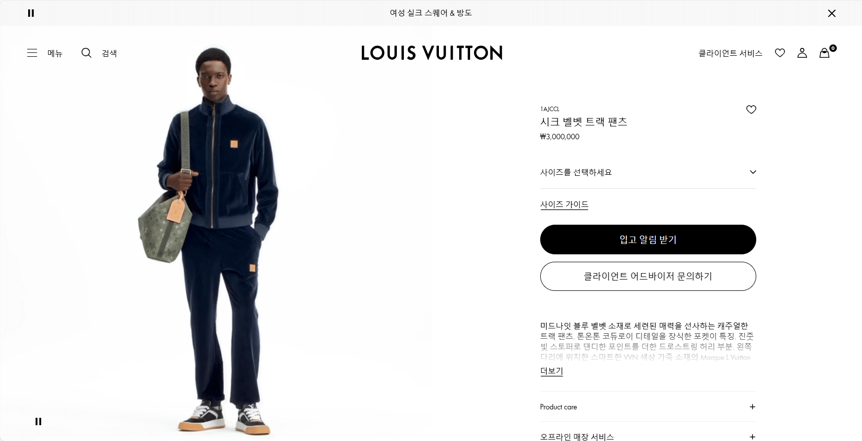 “[루이비통] 시크 벨벳 트랙 팬츠 1AJCCL”의 첫 상품평을 남겨 주세요 응답 취소