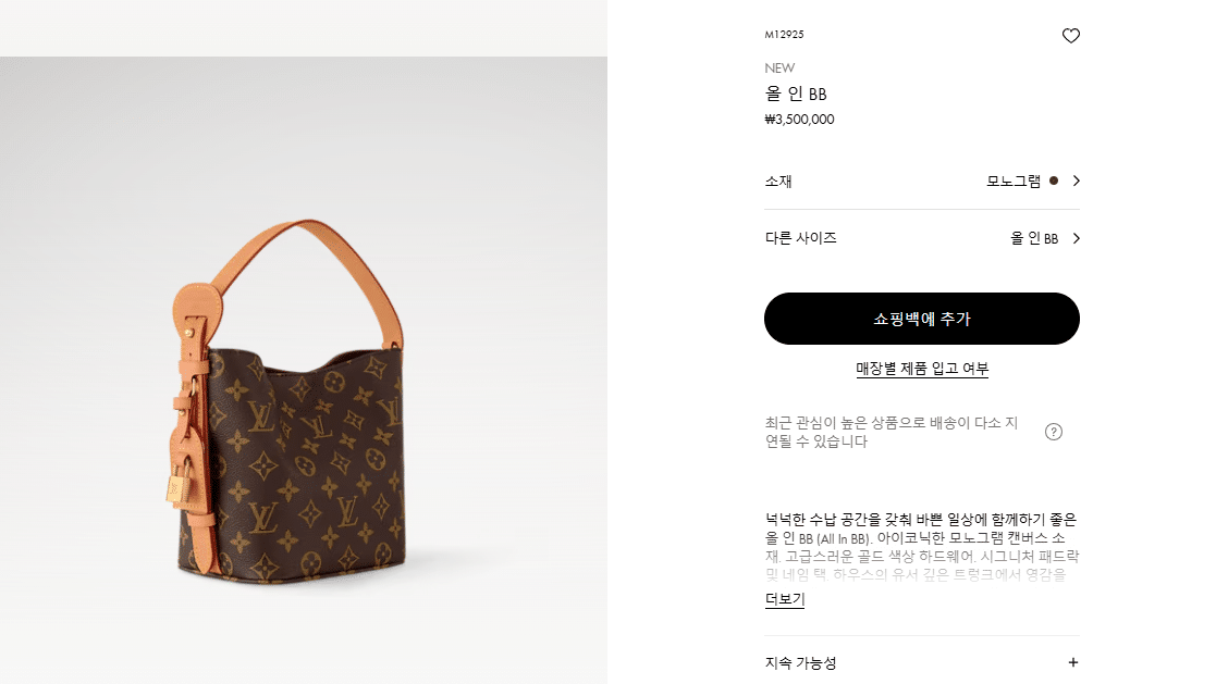 “[루이비통] 올인 BB 모노그램 M12925”의 첫 상품평을 남겨 주세요 응답 취소