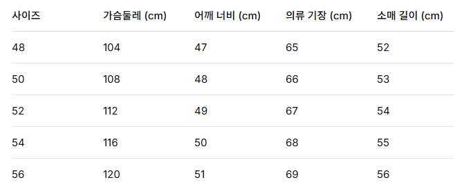 사이즈: 48 / 50 / 52 / 55 / 56