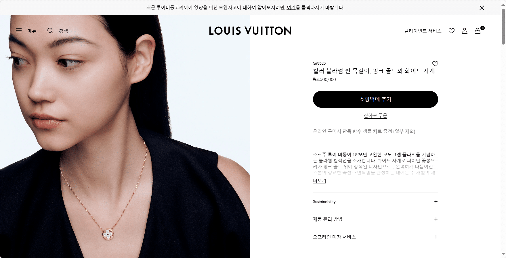 “[루이비통] 컬러 블라썸 썬 목걸이 Q93520”의 첫 상품평을 남겨 주세요 응답 취소