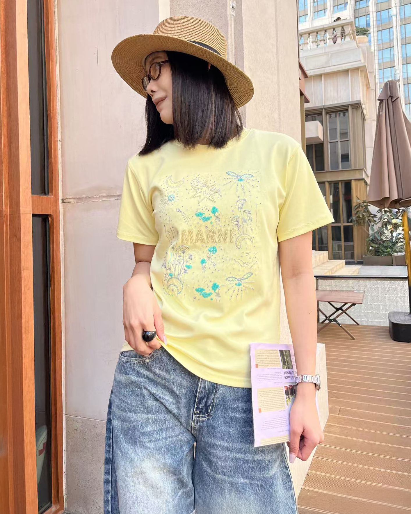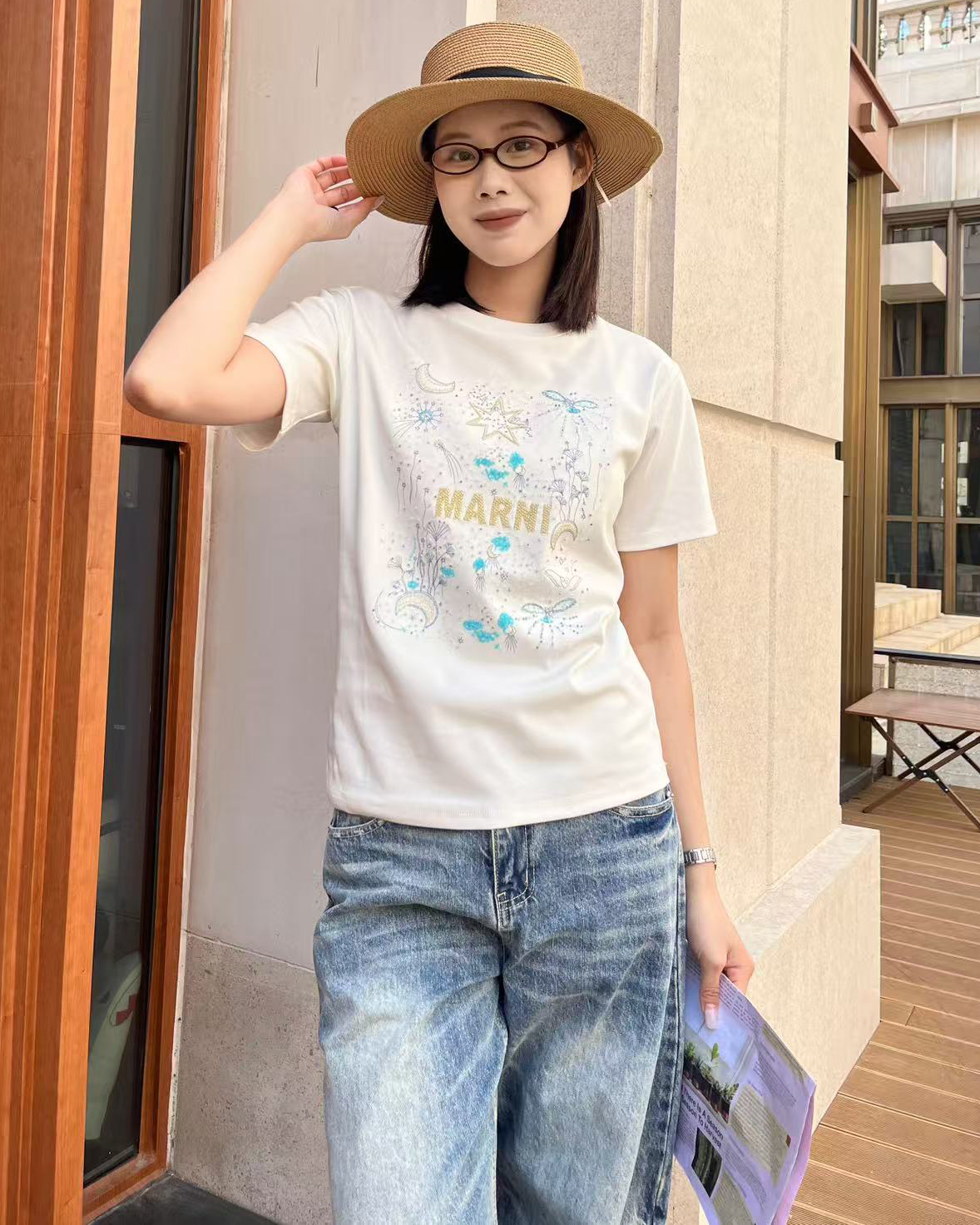 [마르니] 자수 장식 티셔츠 (2 COLORS)