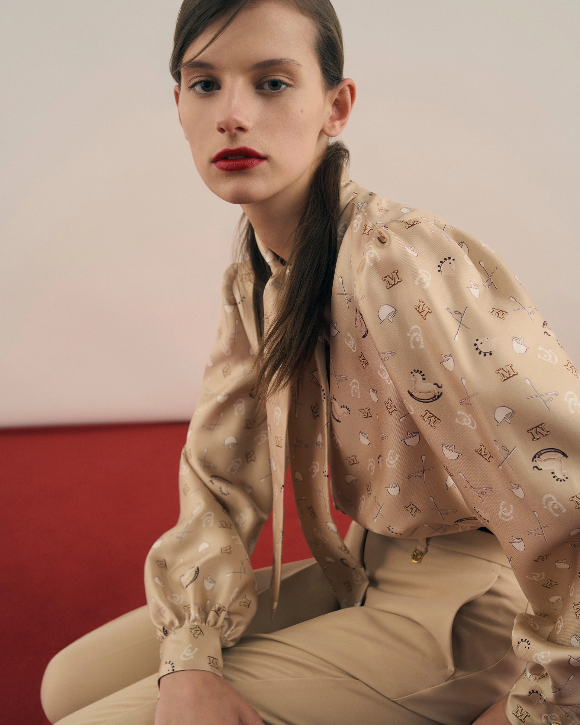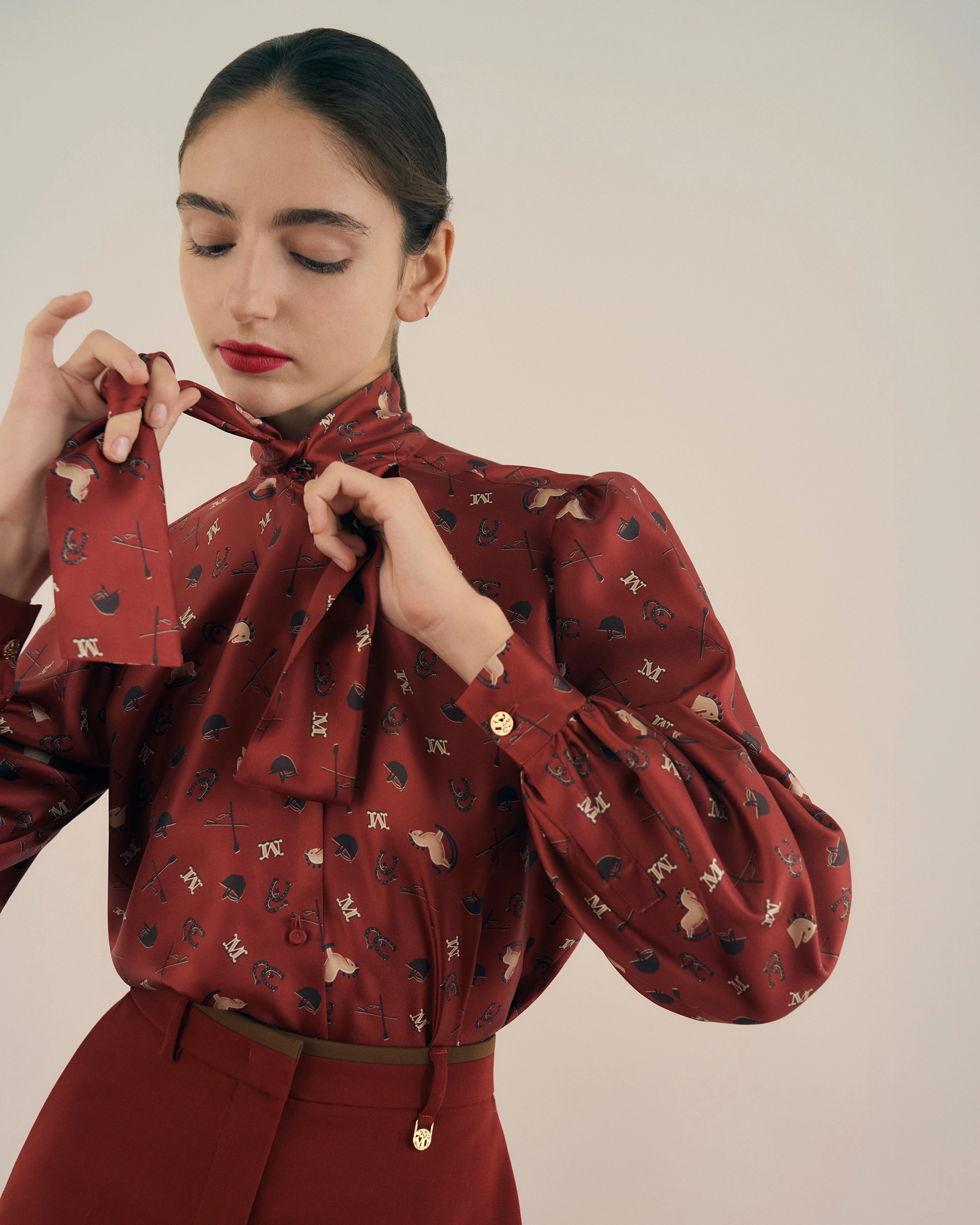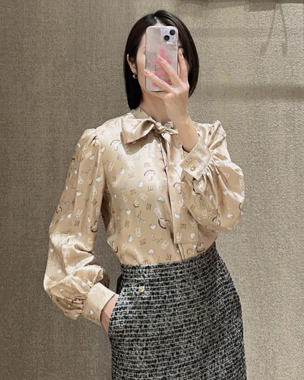 [막스마라] 프린트 실크 퍼시보우 셔츠 (2 COLORS)