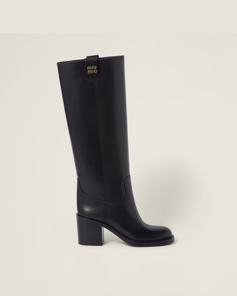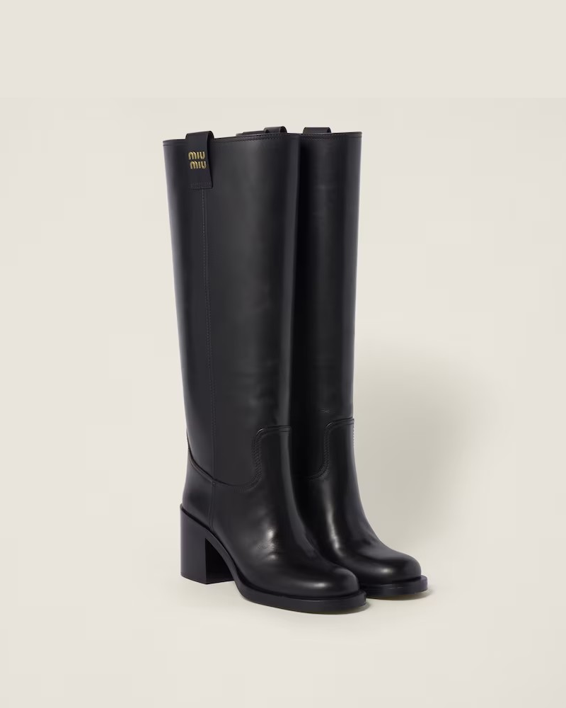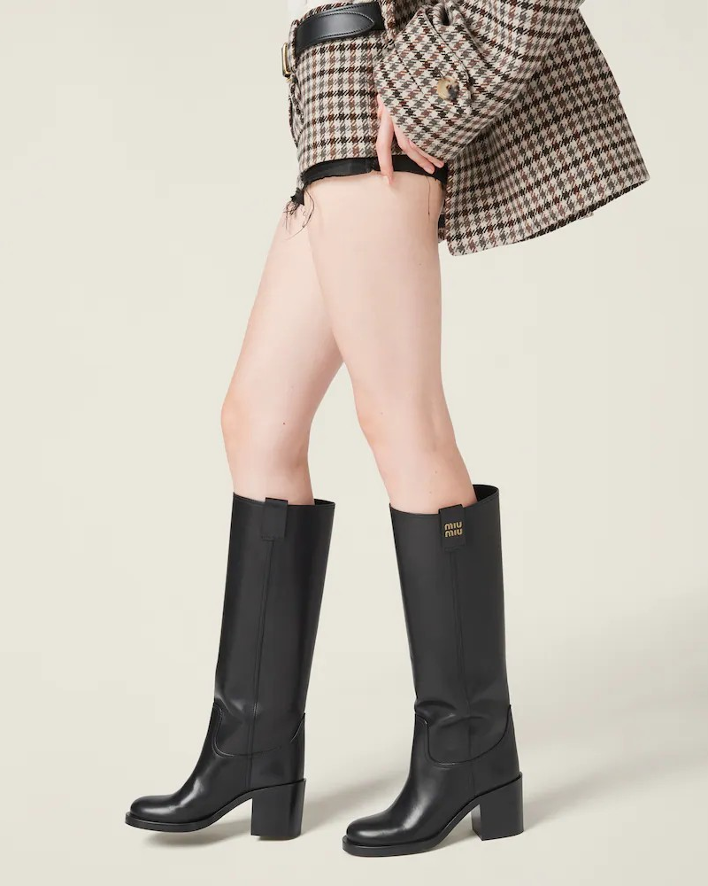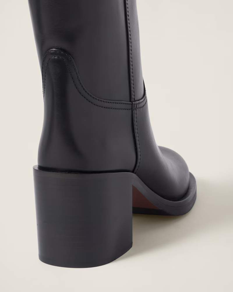 블록 힐이 있는 가죽 무릎 길이 부츠