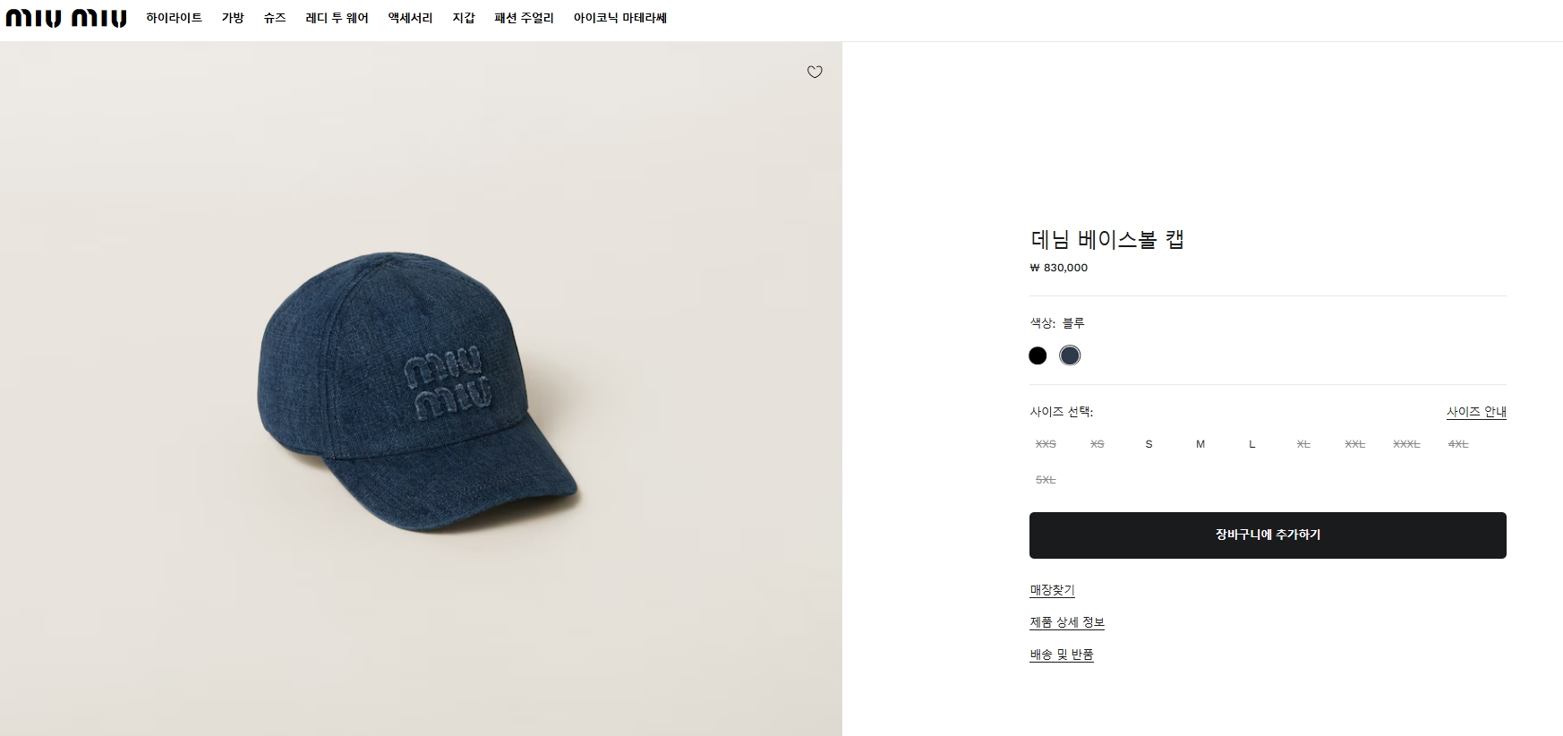 [미우미우] 데님 베이스볼 캡 5HC179 (2 COLORS)