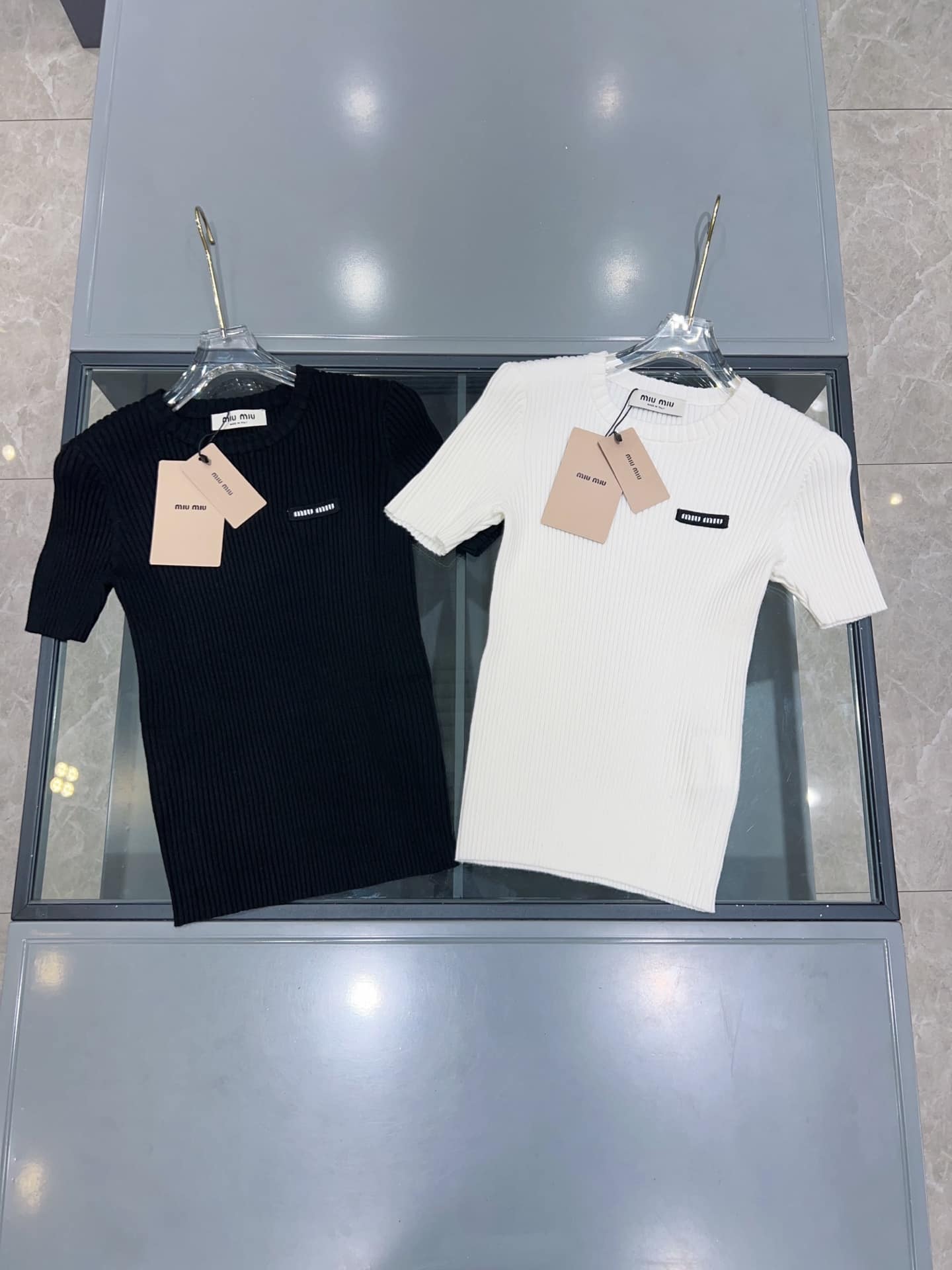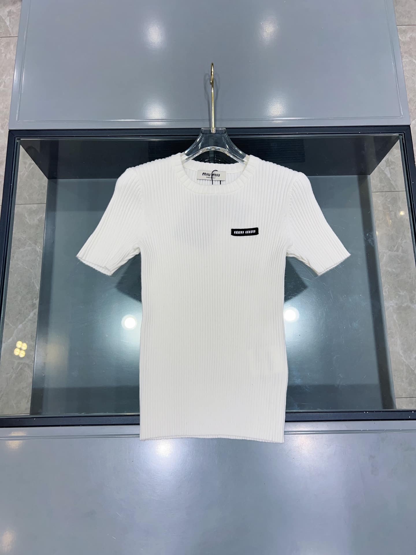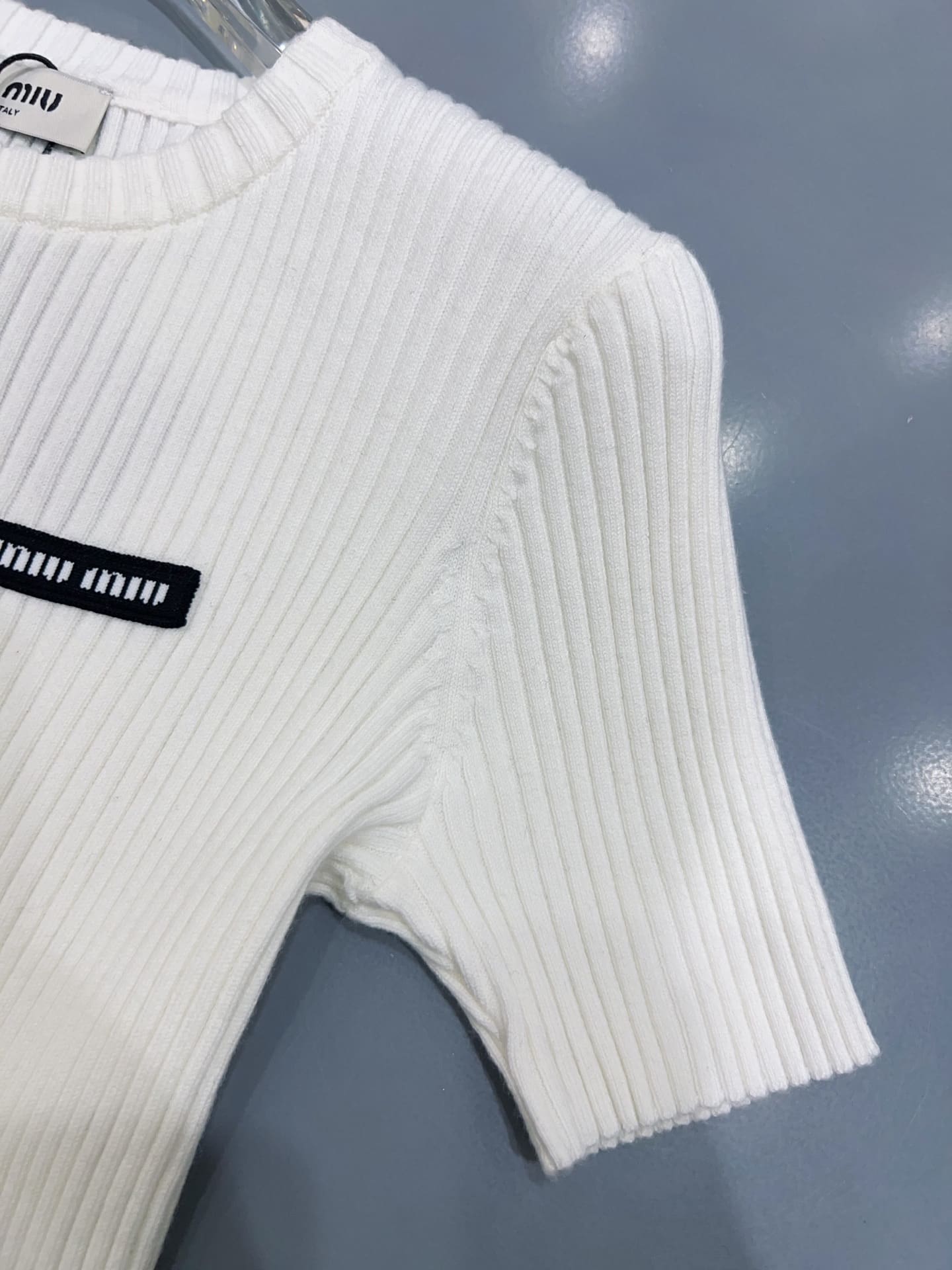“[미우미우] 로고 패치 립드 티셔츠 (2 COLORS)”의 첫 상품평을 남겨 주세요 응답 취소