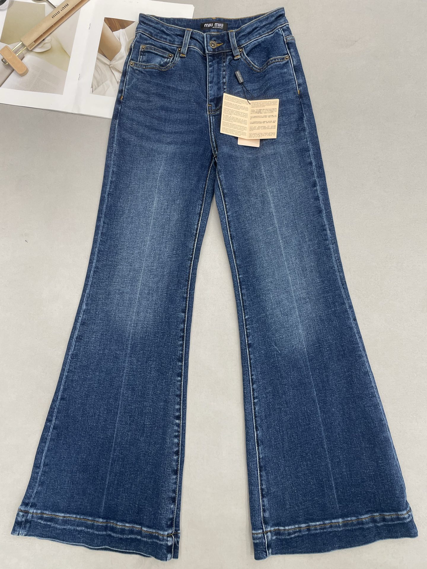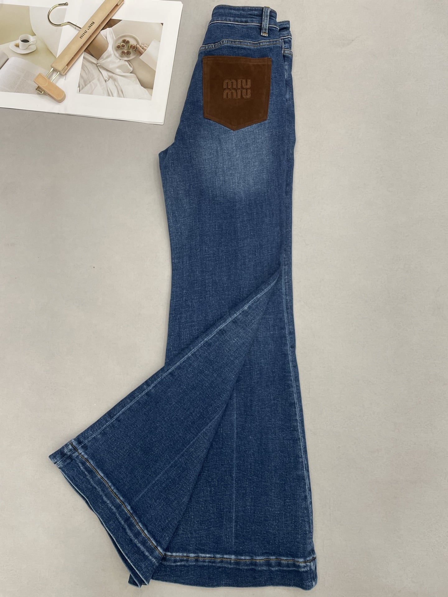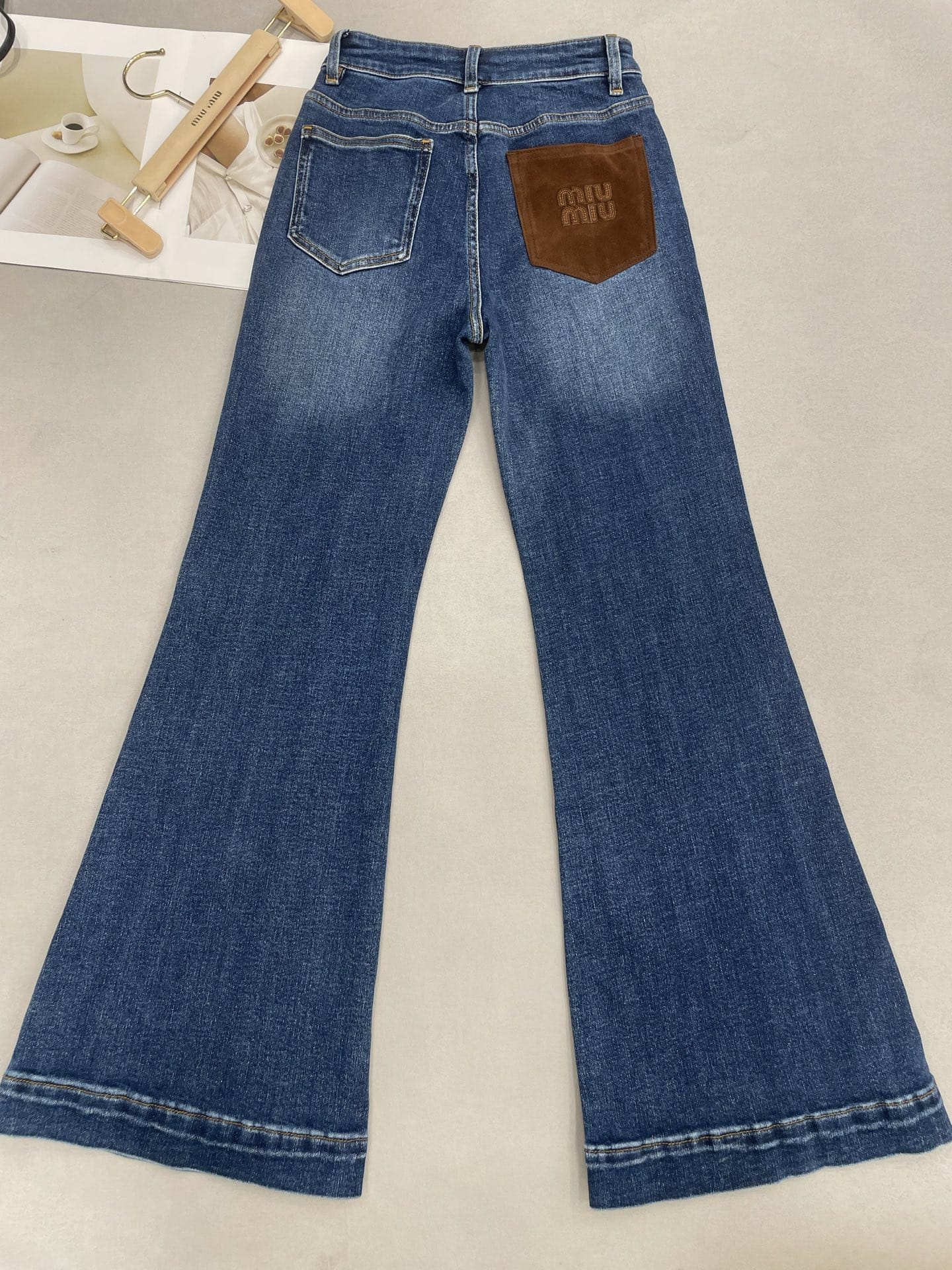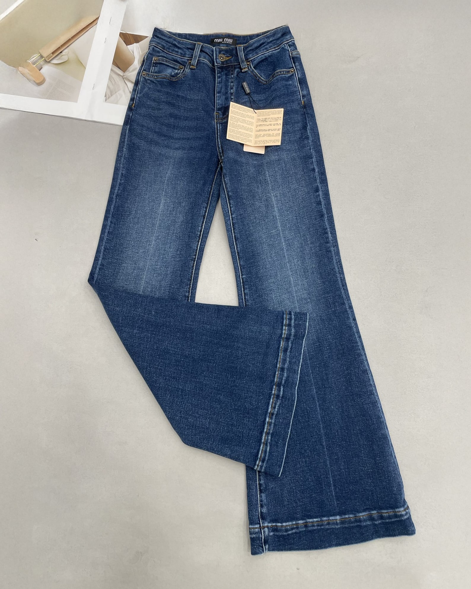 [미우미우] 워시드 데님 플레어 진