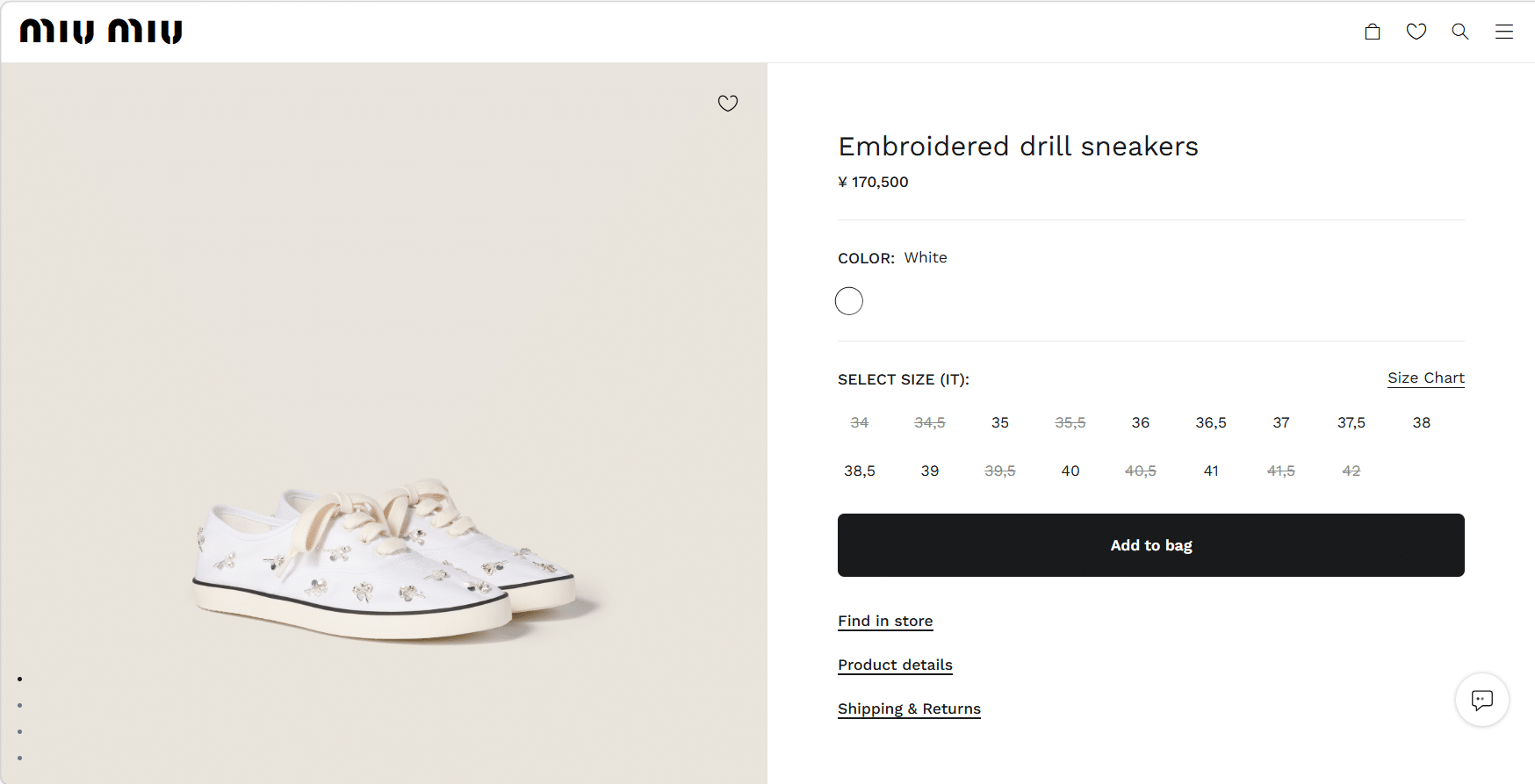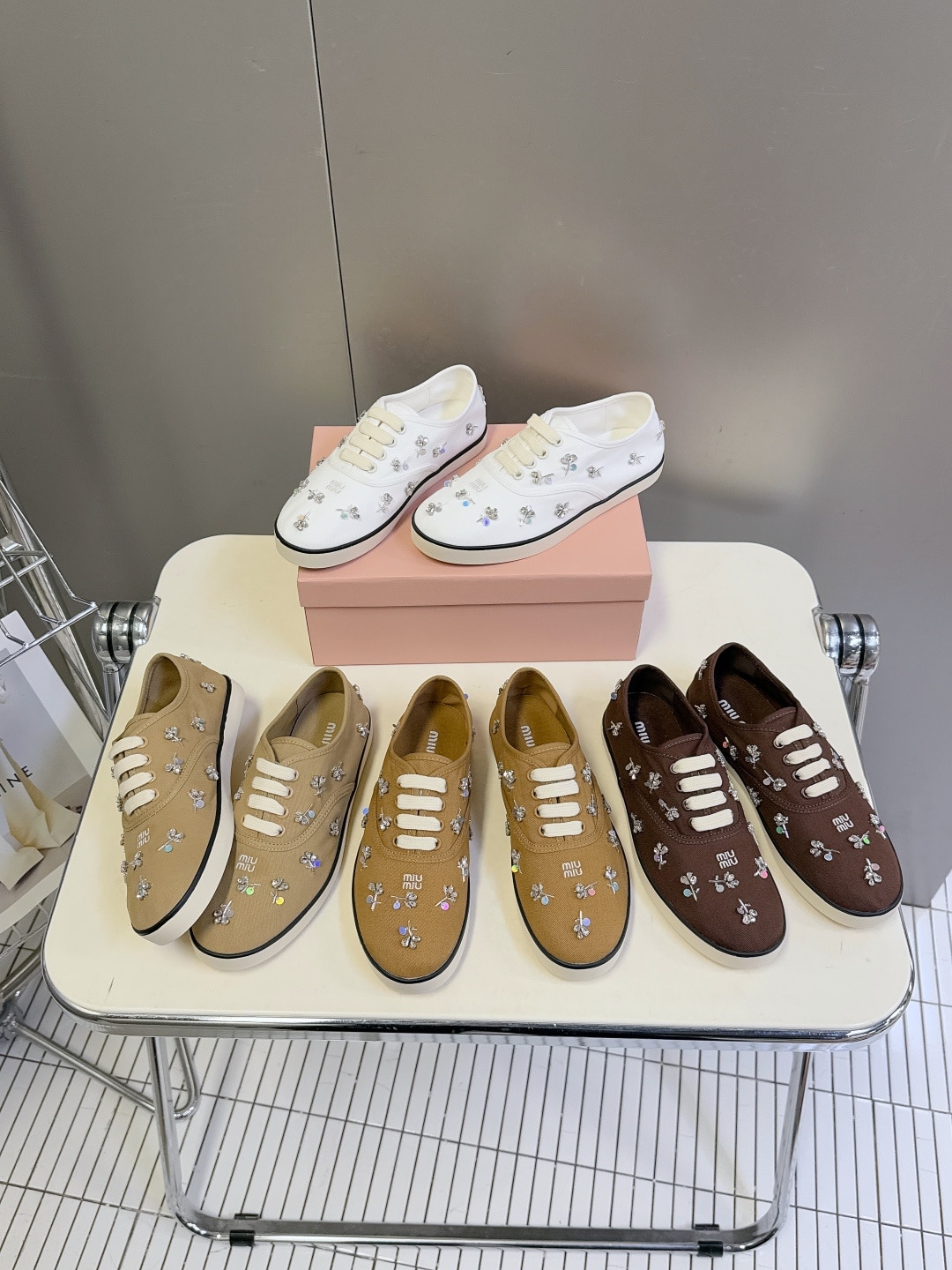 “[미우미우] 자수 디테일 드릴 스니커즈 (4 COLORS)”의 첫 상품평을 남겨 주세요 응답 취소