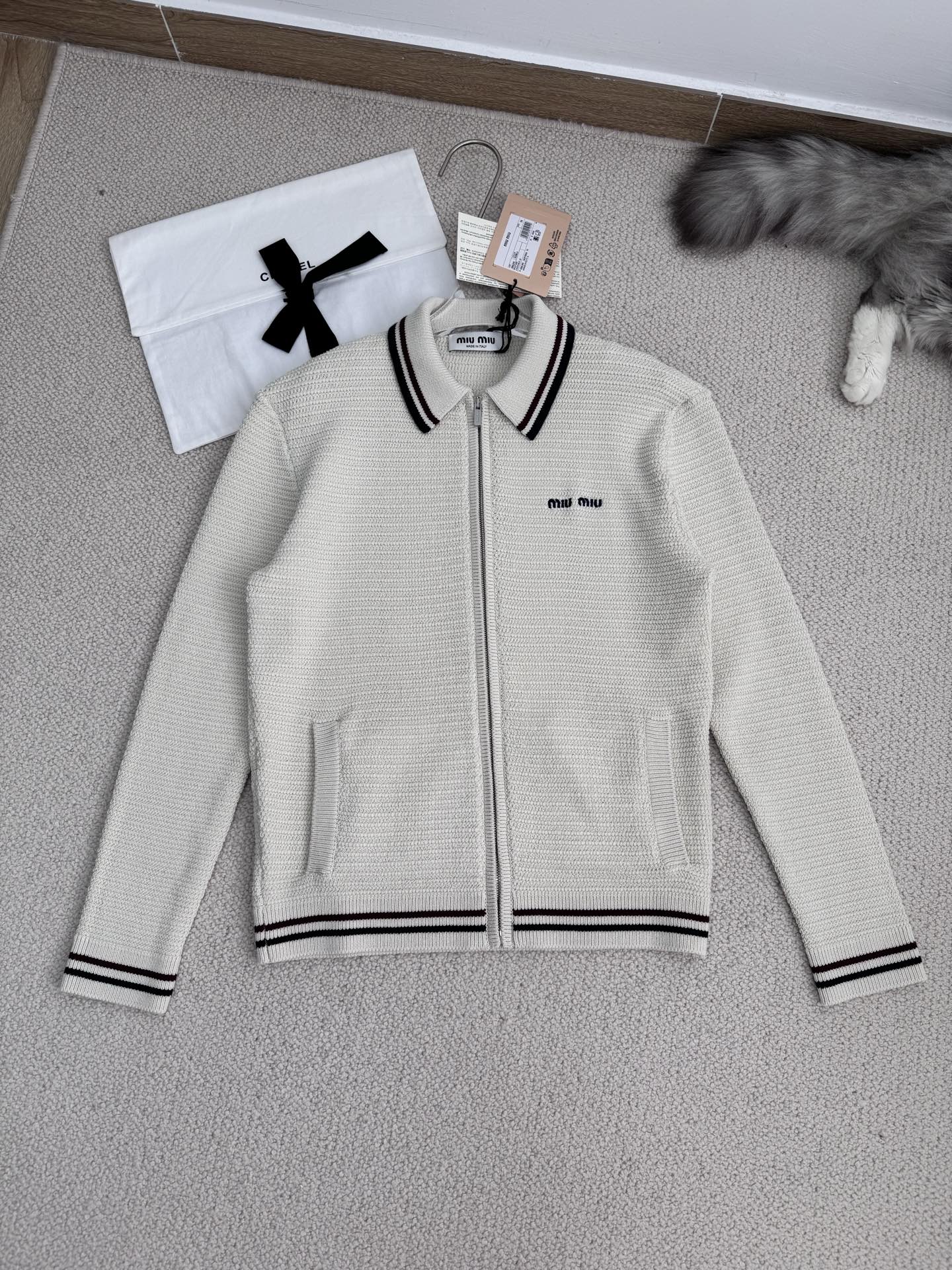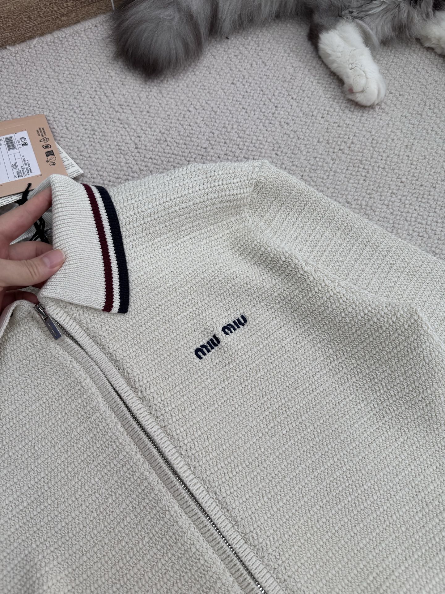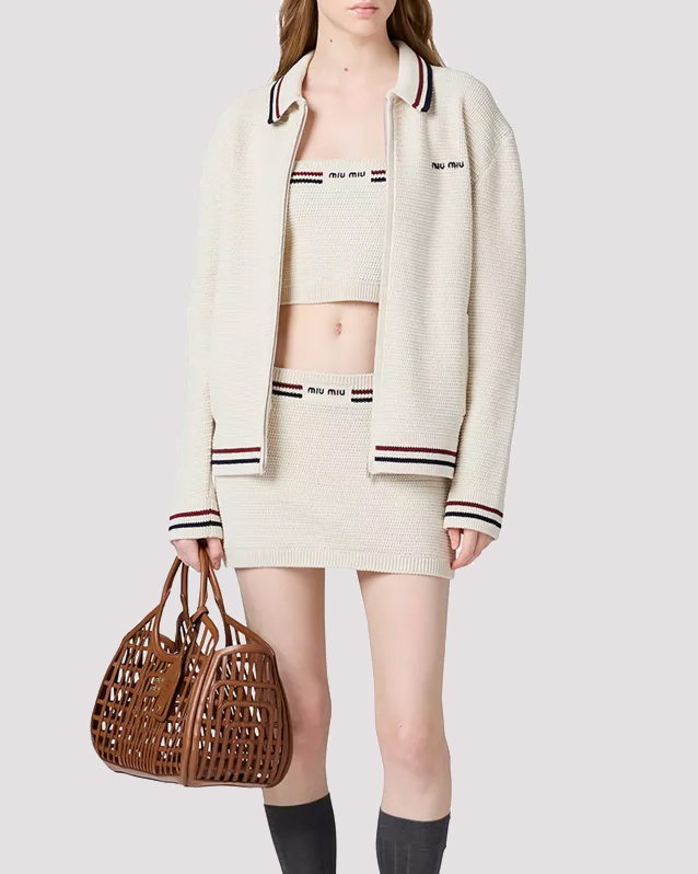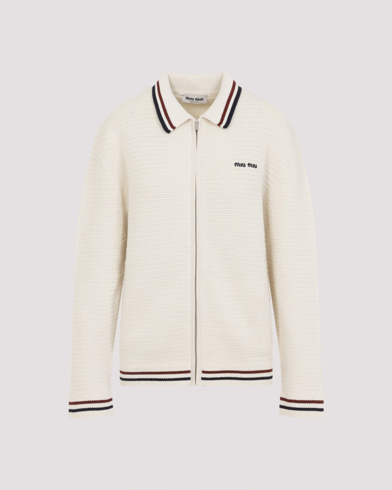 [미우미우] 코튼 니트 지퍼 가디건 MMF969