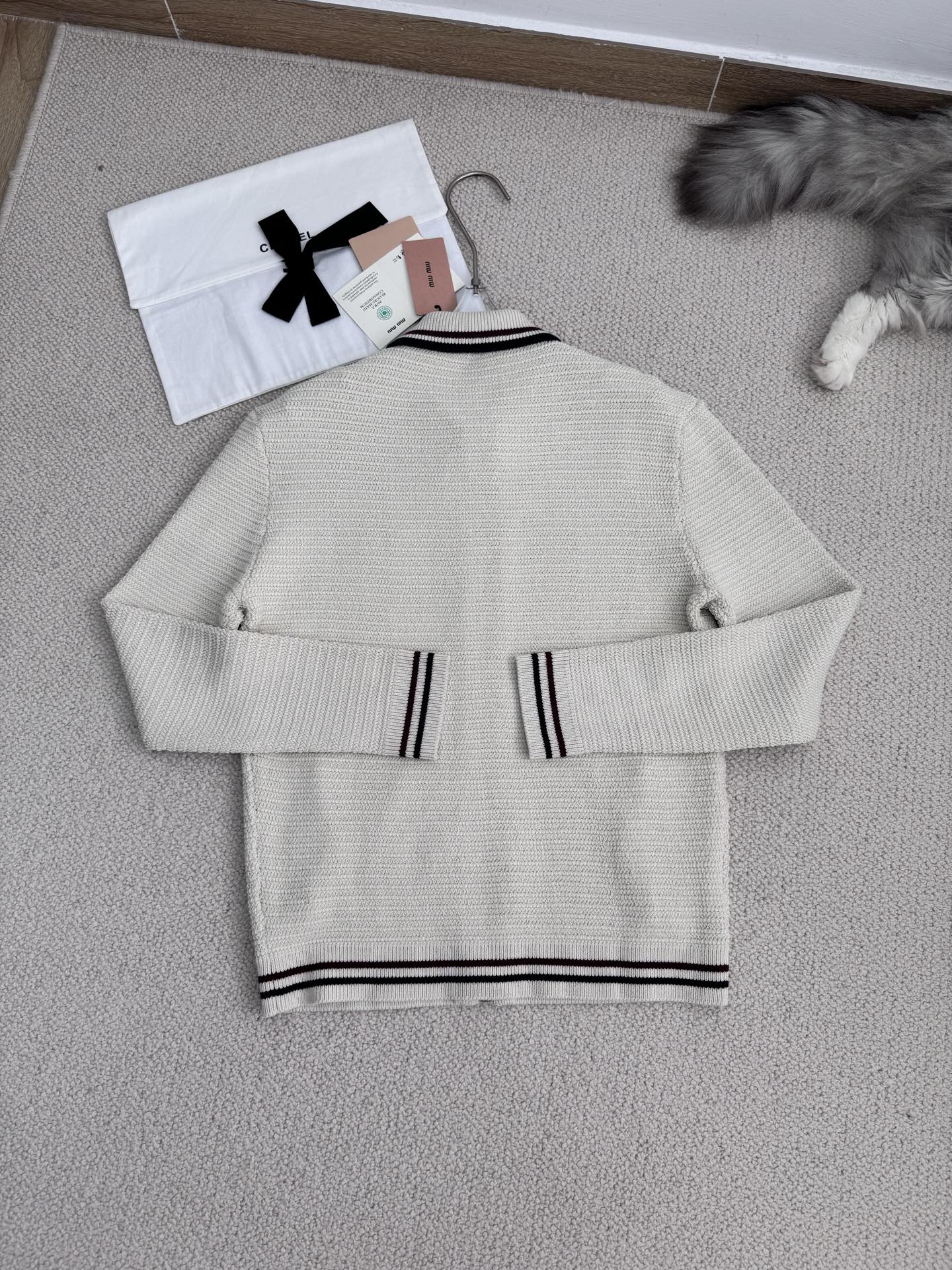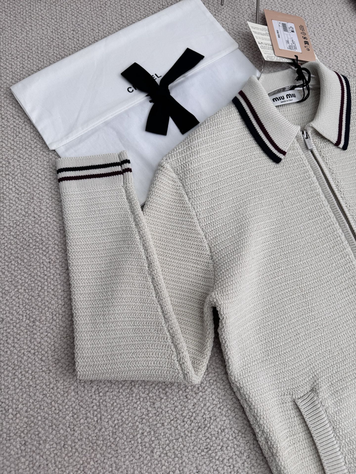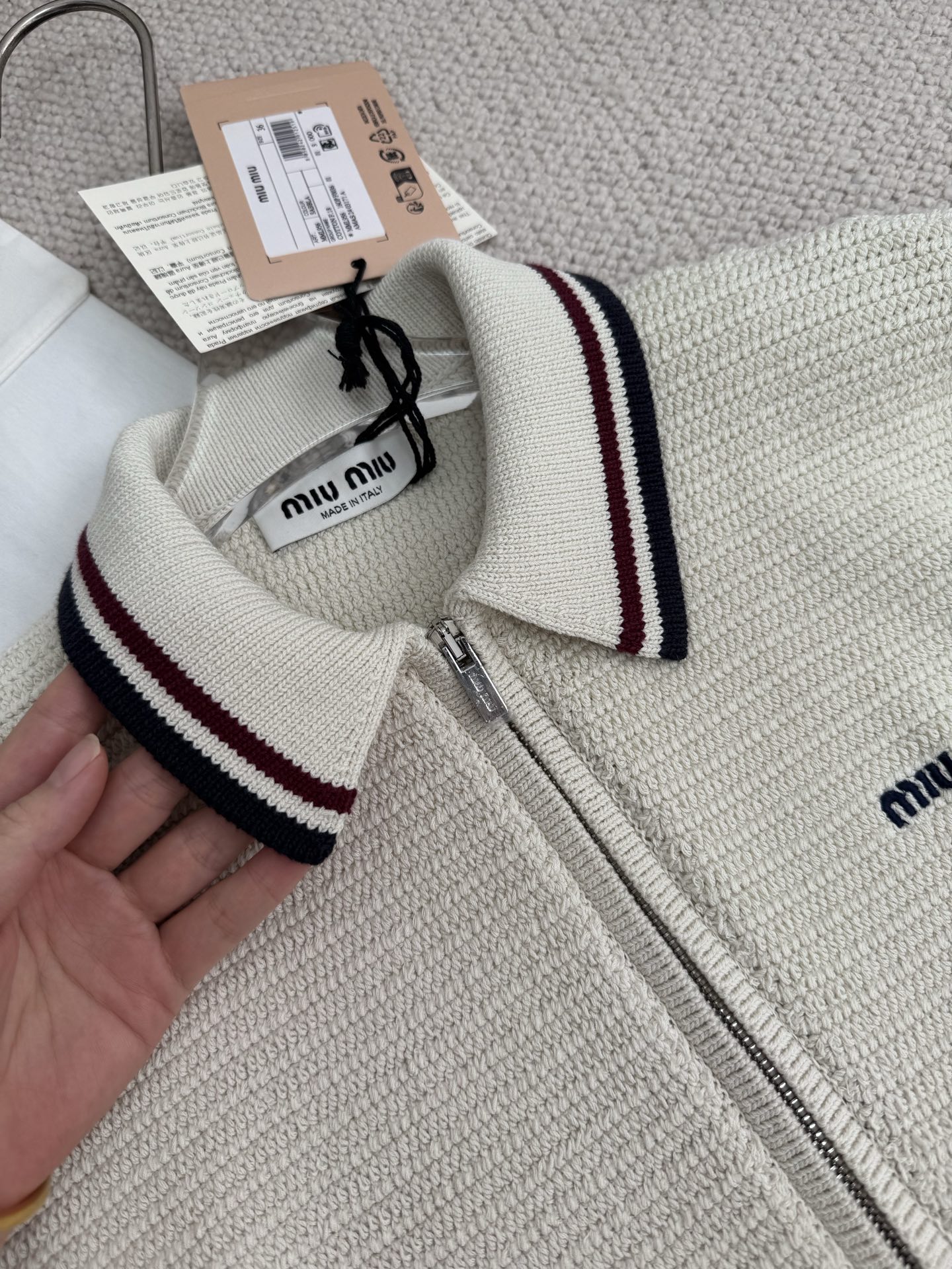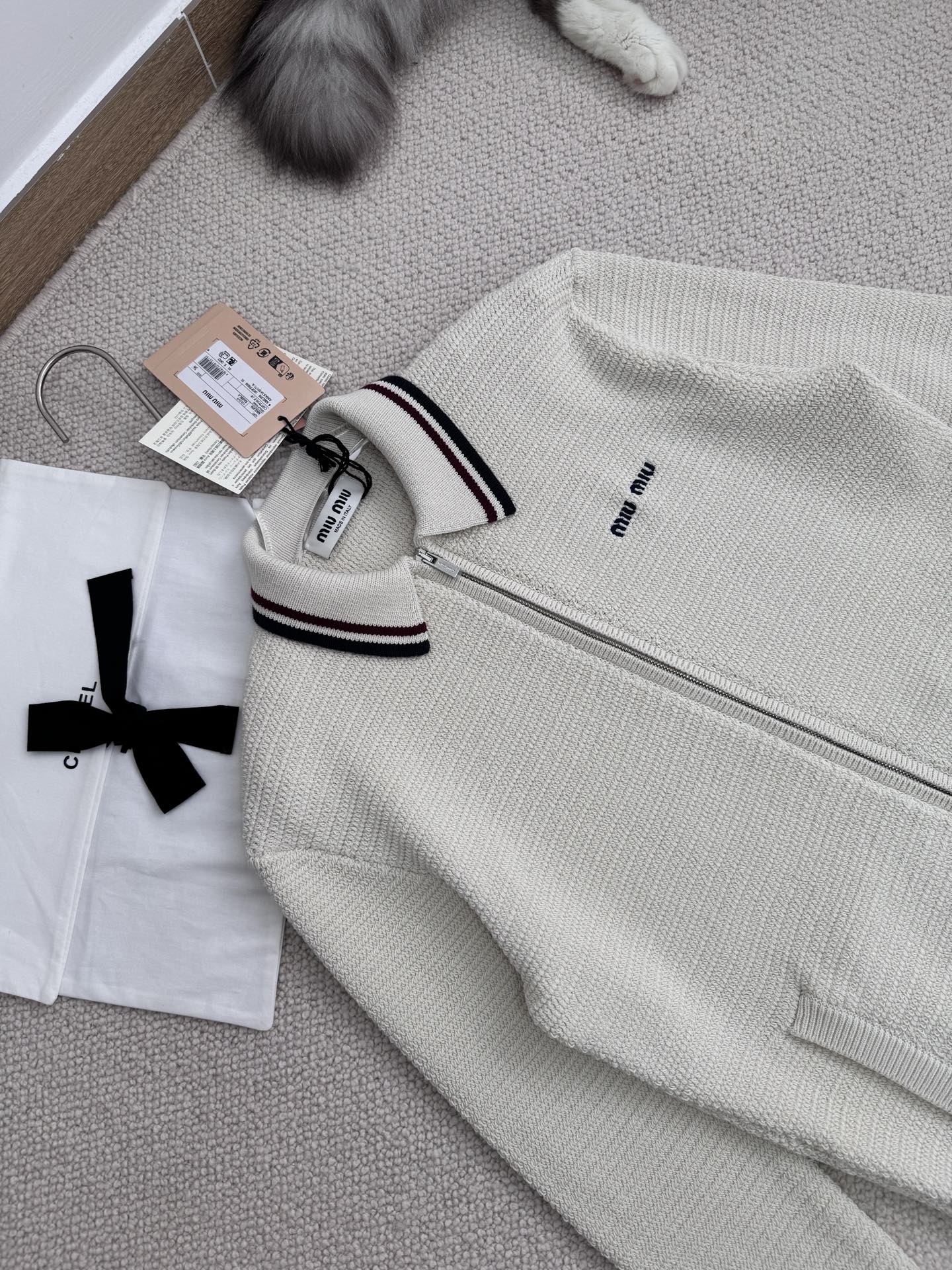 [미우미우] 코튼 니트 지퍼 가디건 MMF969