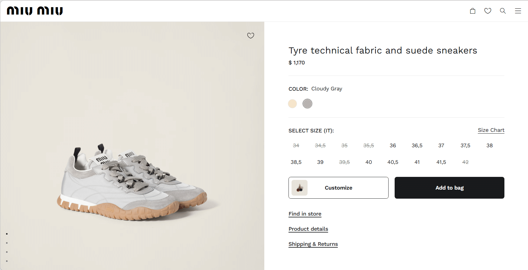 디자인: 2025 클래식 런웨이에서 영감을 받은 아간화(러닝화) 스타일로, 미우미우만의 전위적이고 대담한 디자인이 돋보입니다.