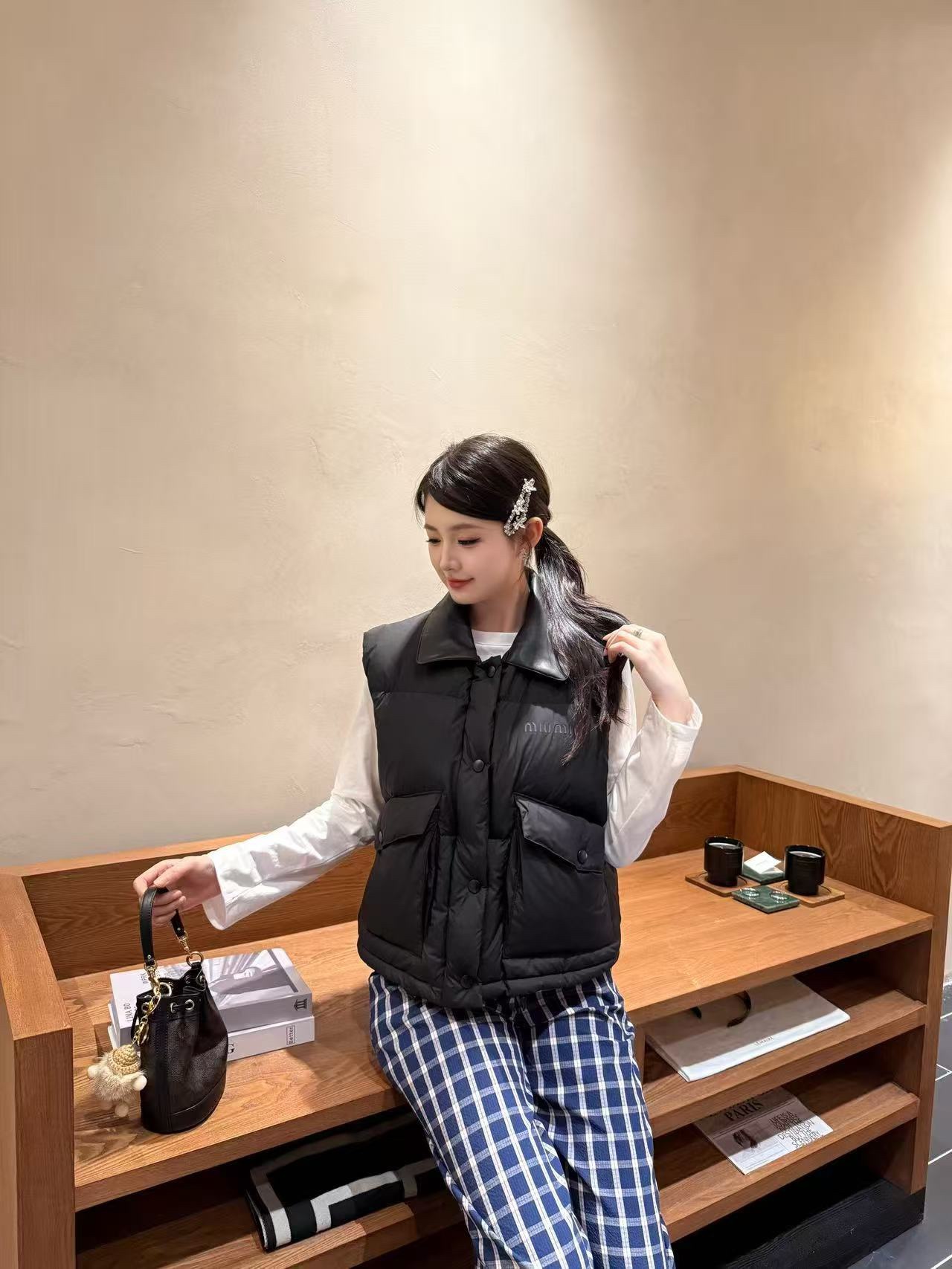 [미우미우] 테크니컬 퐁제 다운 베스트 블랙