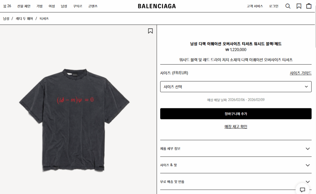 “[발렌시아가] 남성 디랙 이퀘이션 오버사이즈 티셔츠 워시드 블랙/레드 850345”의 첫 상품평을 남겨 주세요 응답 취소