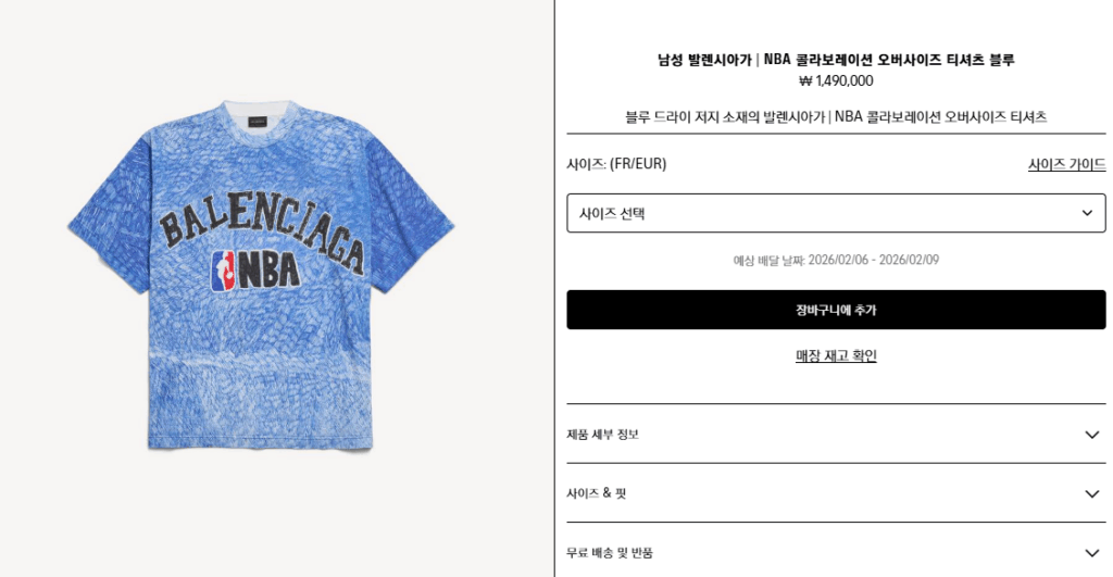 “[발렌시아가] 남성 발렌시아가 | Nba 콜라보레이션 오버사이즈 티셔츠 블루 A001VVTUVX64011”의 첫 상품평을 남겨 주세요 응답 취소