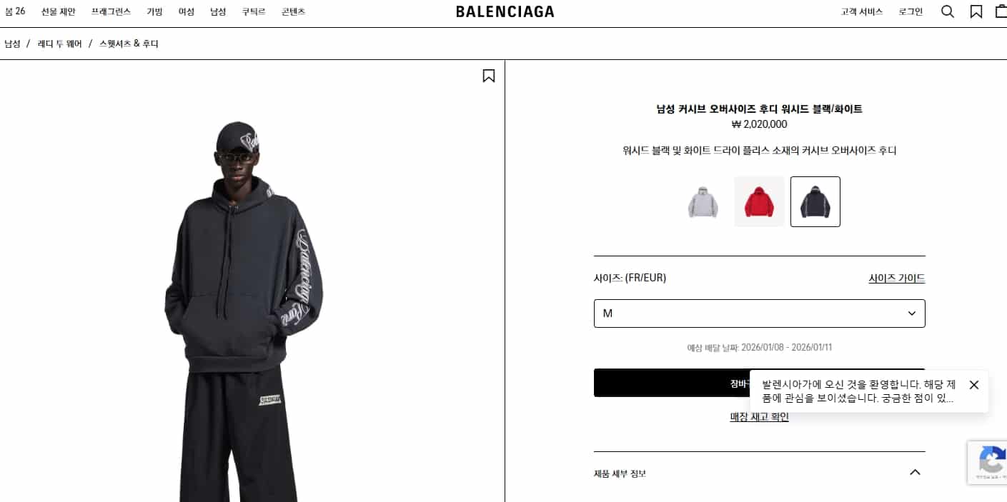 “[ 발렌시아가] 남성 커시브 오버사이즈 후디 858143TTVM86167 (2 COLORS)”의 첫 상품평을 남겨 주세요 응답 취소