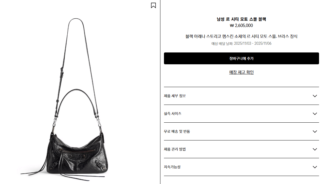 주의사항: 의류 및 신발 카테고리는 재고 상황에 따라 입고까지 일주일 이상 추가 소요될 수 있으므로, 가방/지갑류보다 시간적 여유를 두고 주문해 주시길 권장합니다.
