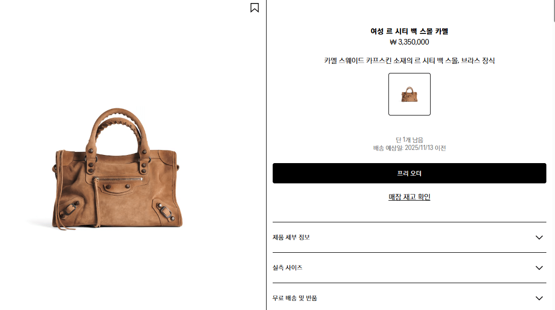주의사항: 의류 및 신발 카테고리는 재고 상황에 따라 입고까지 일주일 이상 추가 소요될 수 있으므로, 가방/지갑류보다 시간적 여유를 두고 주문해 주시길 권장합니다.