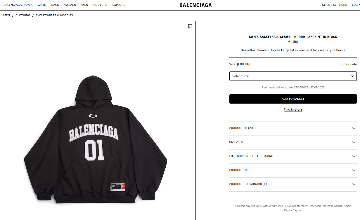 [발렌시아가] 바스켓볼 시리즈 후디 라지 핏 821861TRVW81055