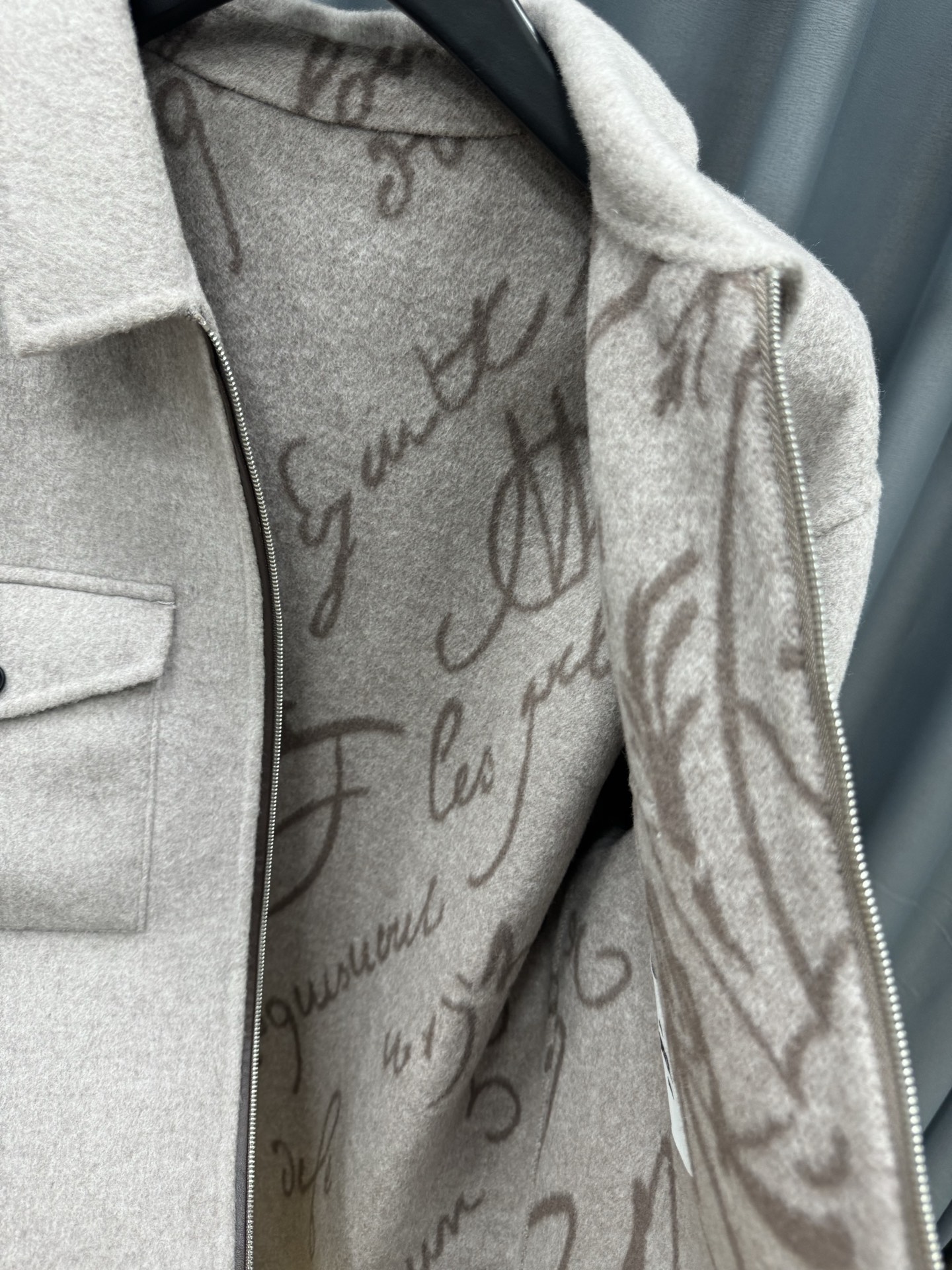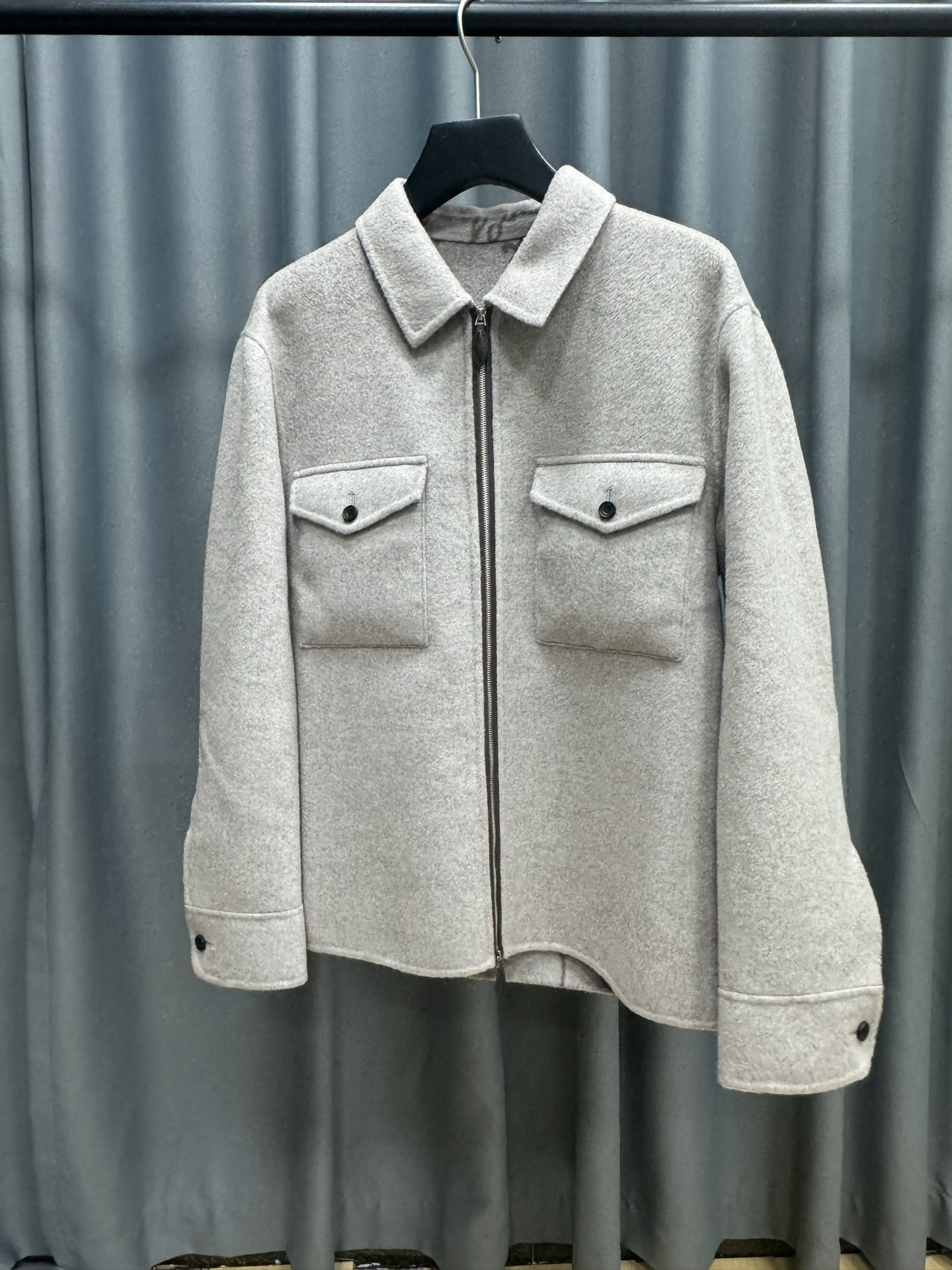 Berluti 2025 가을·겨울 시즌 신작으로, 도시적인 여유와 감각을 동시에 담아낸 울·캐시미어 혼방 셔츠 자켓. 부드럽고 유연한 질감이 돋보이며, 깔끔한 실루엣으로 다양한 스타일에 매치하기 좋은 아이템이다.