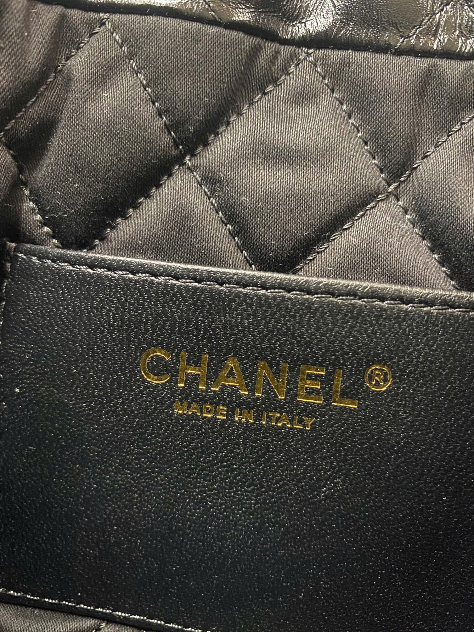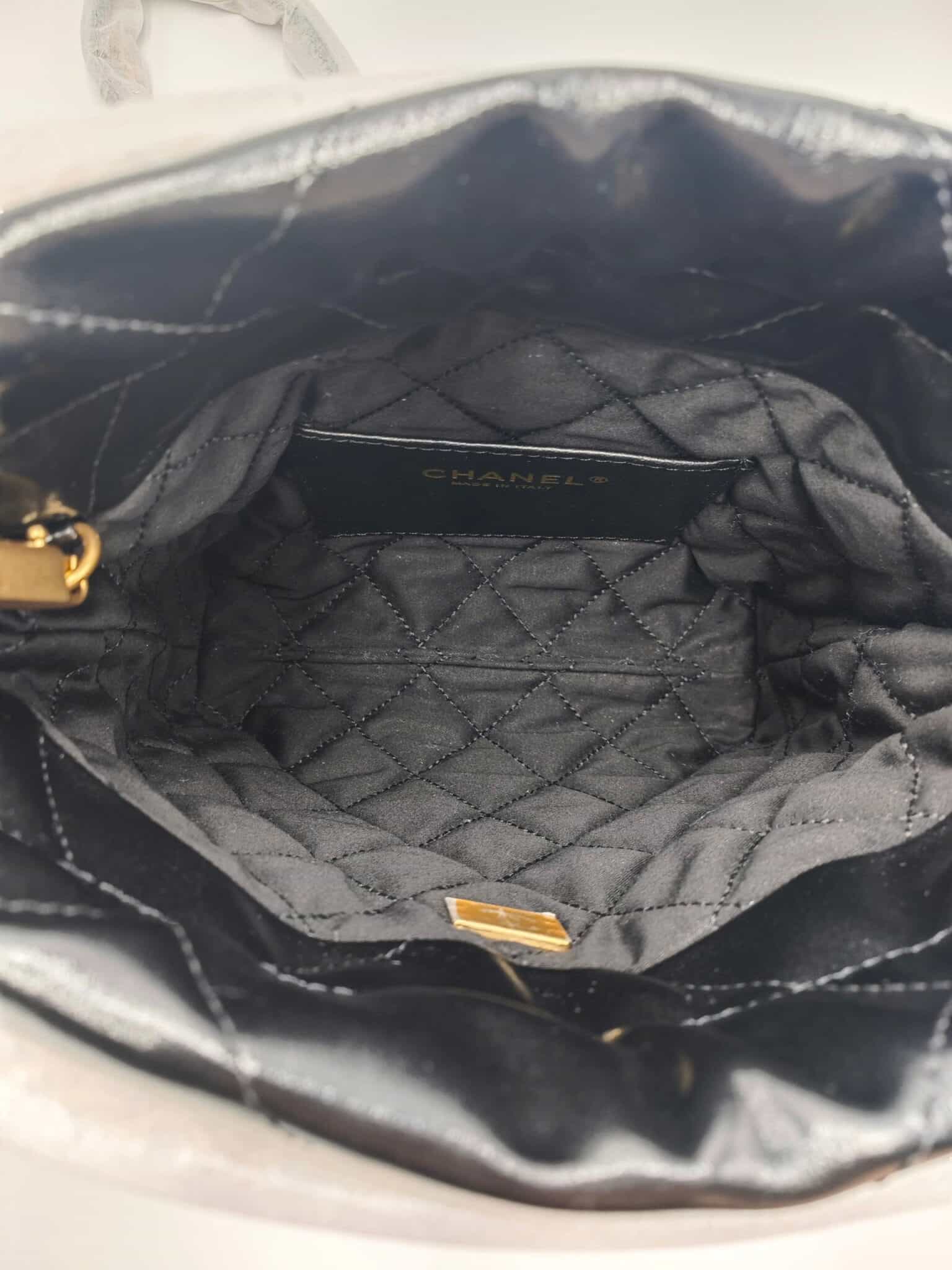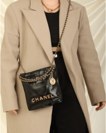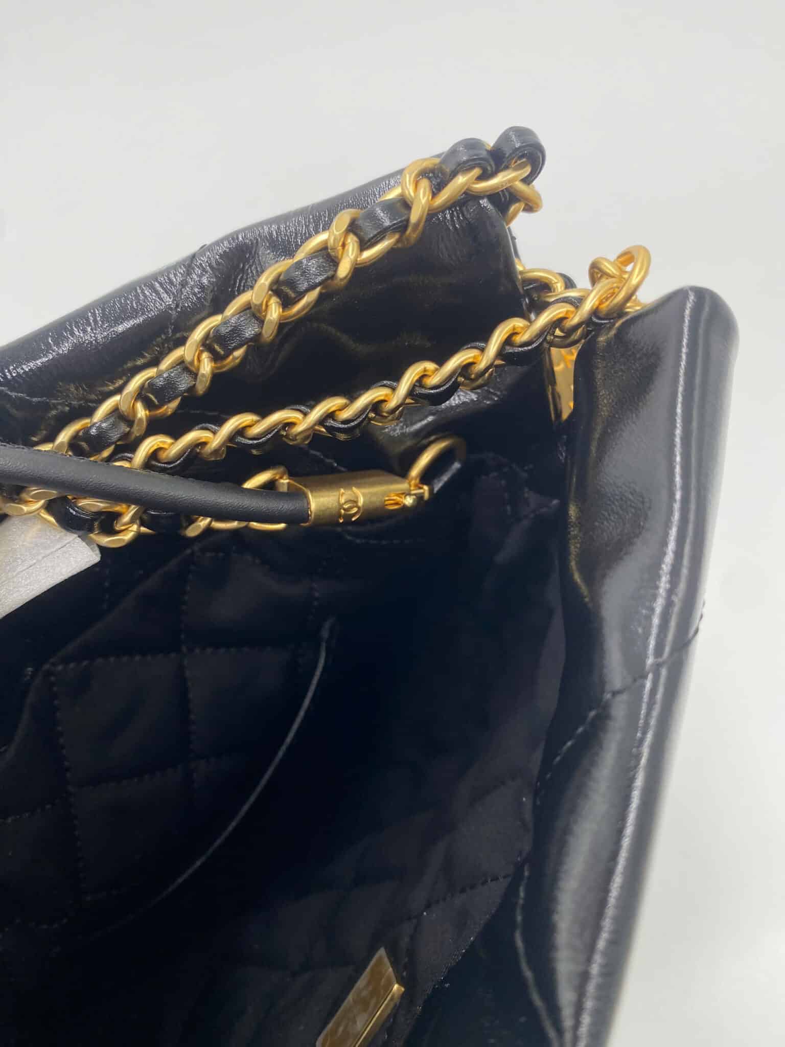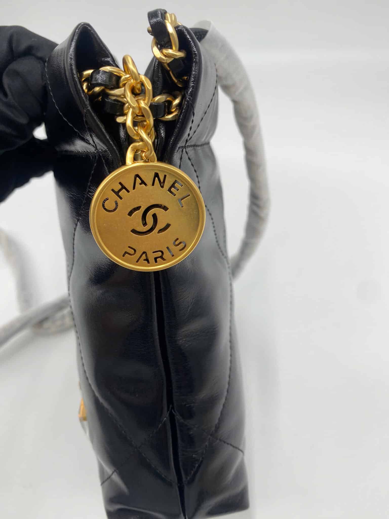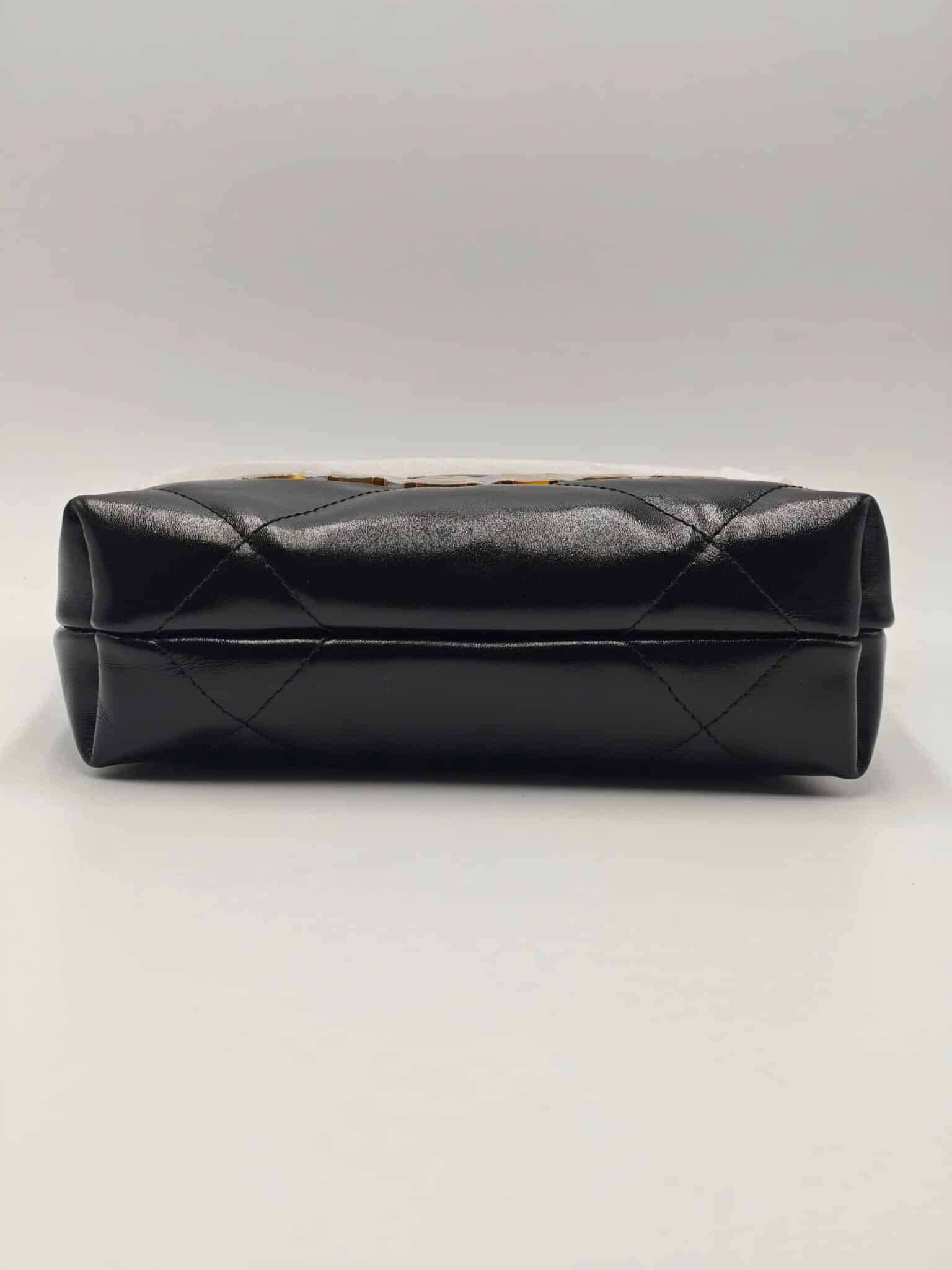 [베트남 출고] 샤넬 22 미니 핸드백 샤이니 카프스킨 골드 메탈 블랙 AS3980