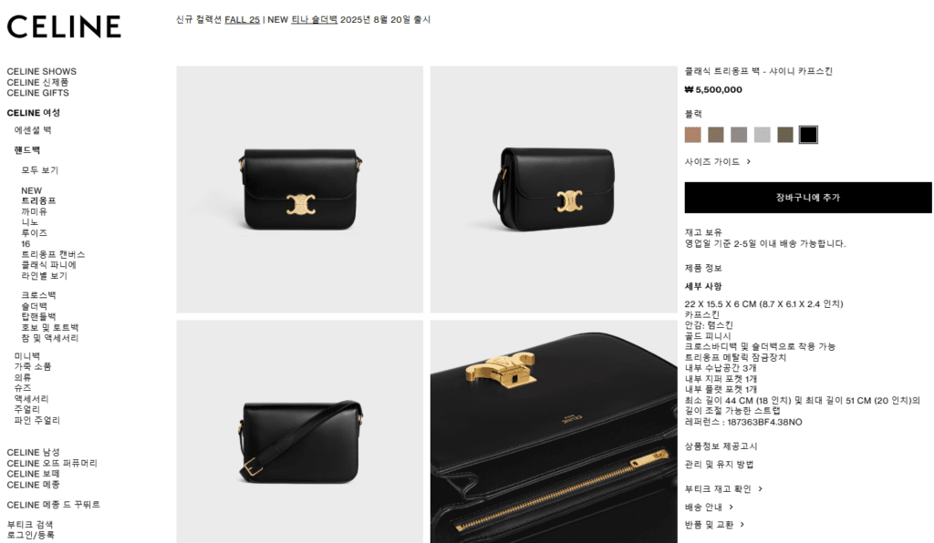 ![[베트남 출고] 셀린느 클래식 트리옹프 백(미디움) – 샤이니 카프스킨 187363BF4.38NO - 이미지 5](https://www.skyshop77.com/wp-content/uploads/2026/02/308158-5.png)