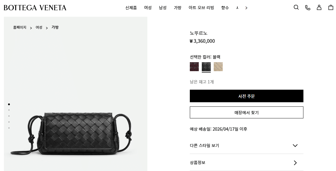 “[ 보테가베네타] 노뚜르노 843893”의 첫 상품평을 남겨 주세요 응답 취소