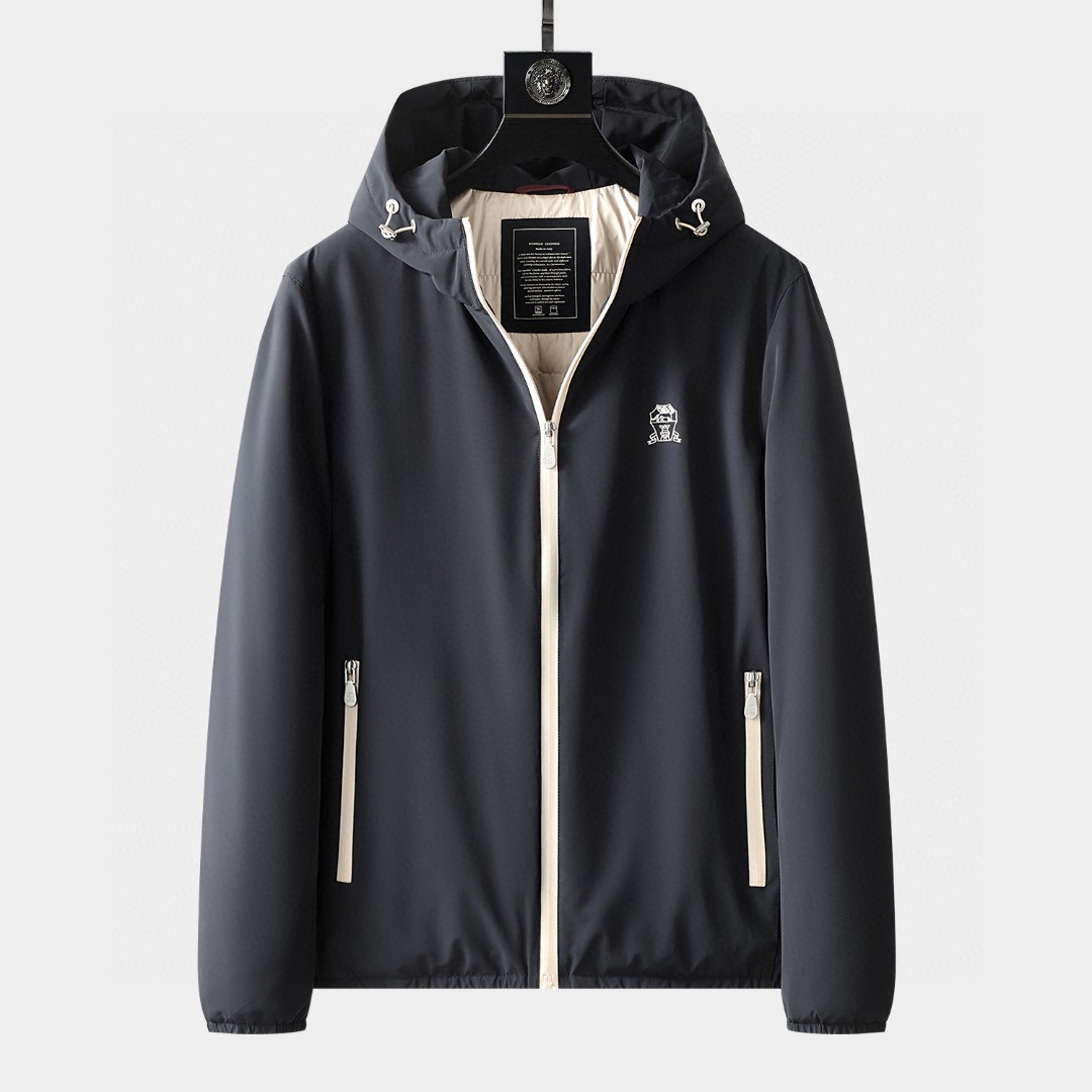[브루넬로 쿠치넬리] 로고 자수 후드 바람막이 자켓 MM40A7440G