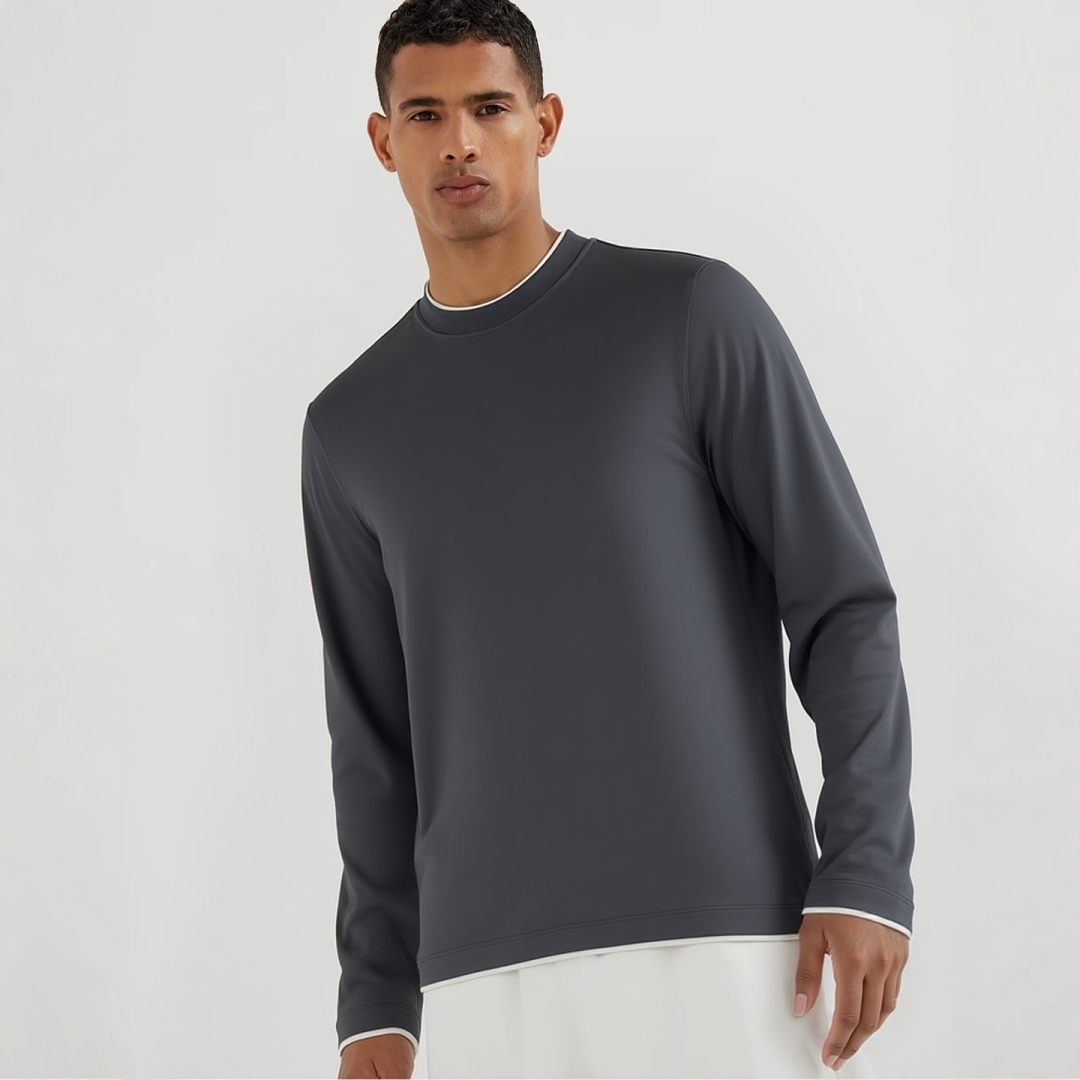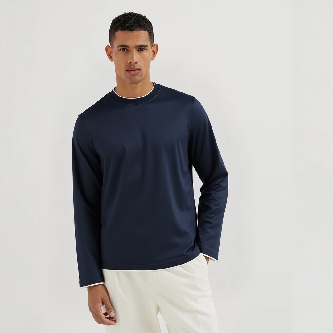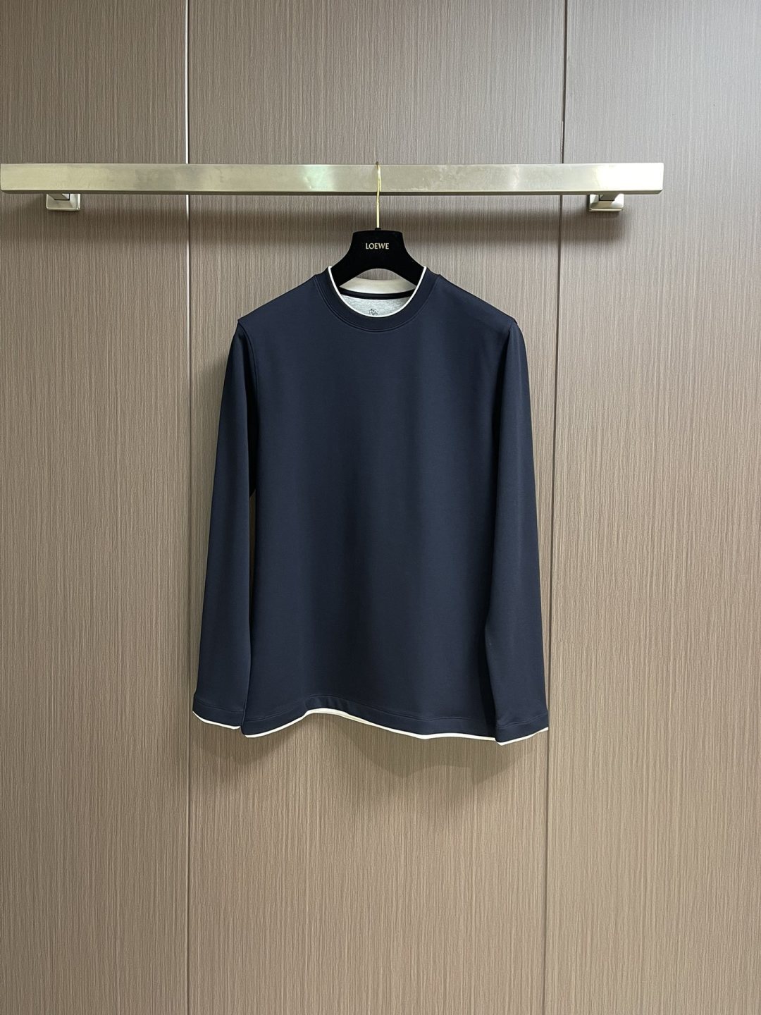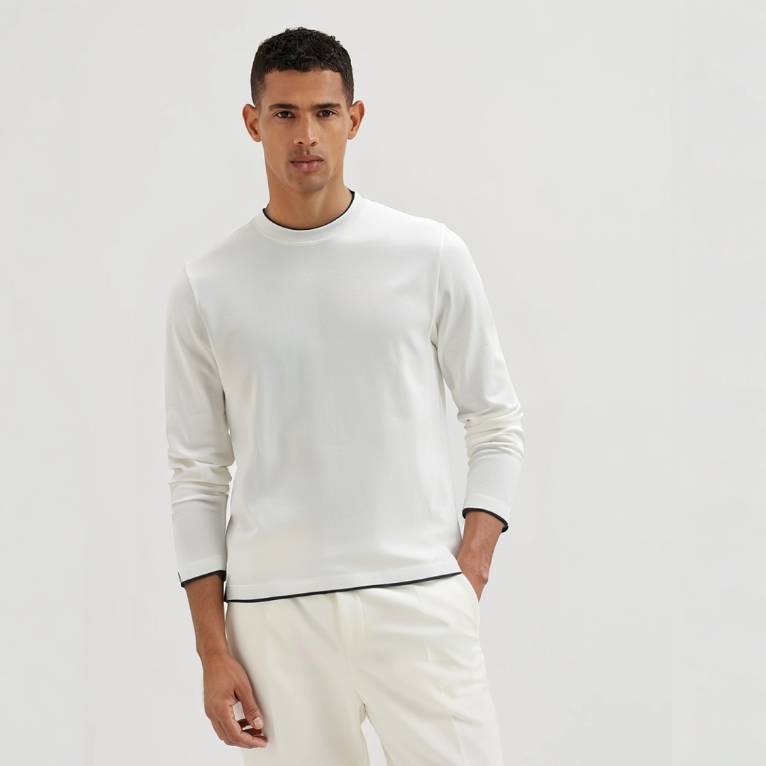[브루넬로 쿠치넬리] 배색 포인트 라운드 긴팔 티셔츠 (3 COLORS)
