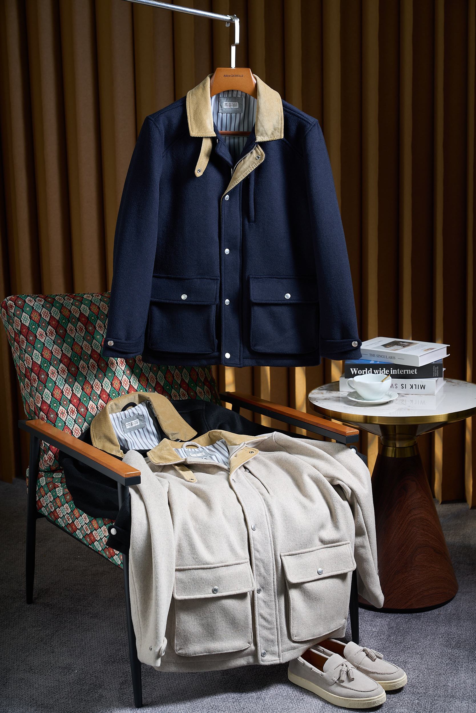 [브루넬로 쿠치넬리] 코듀로이 시어링 봄버 재킷 (3 COLORS)