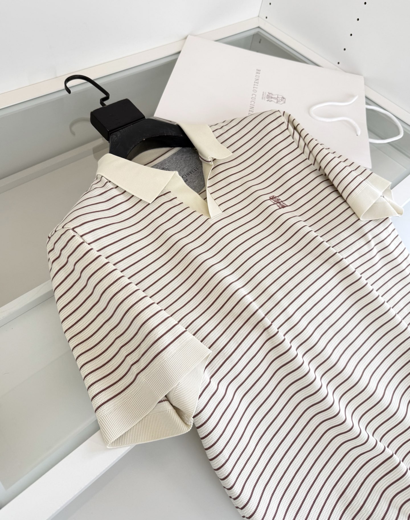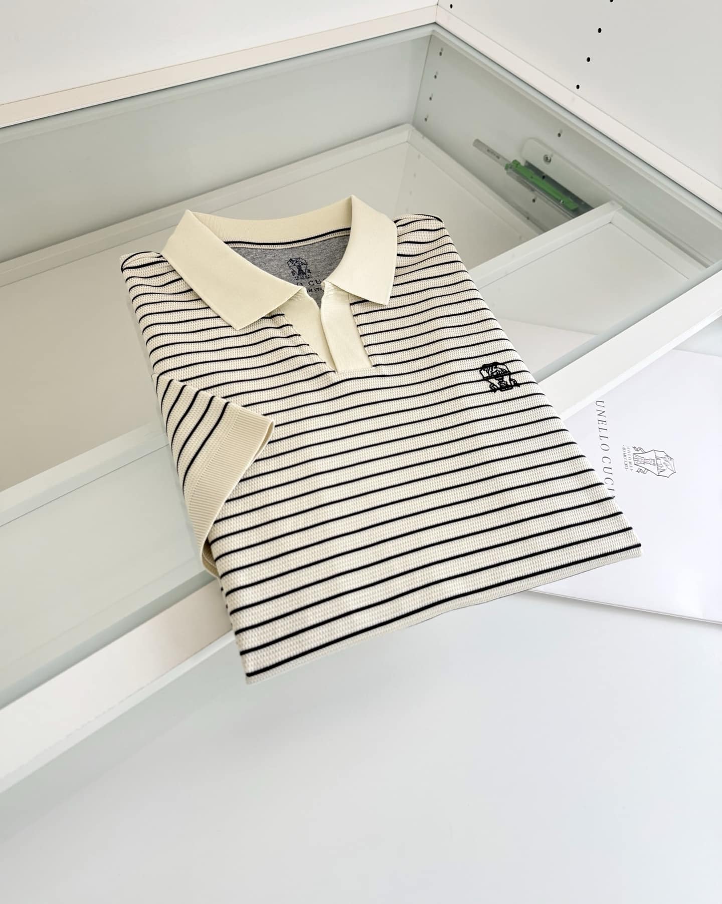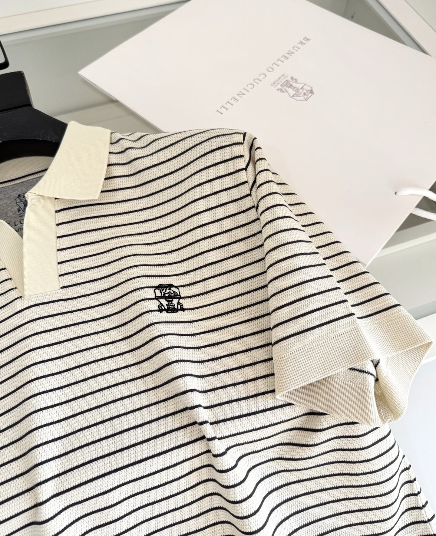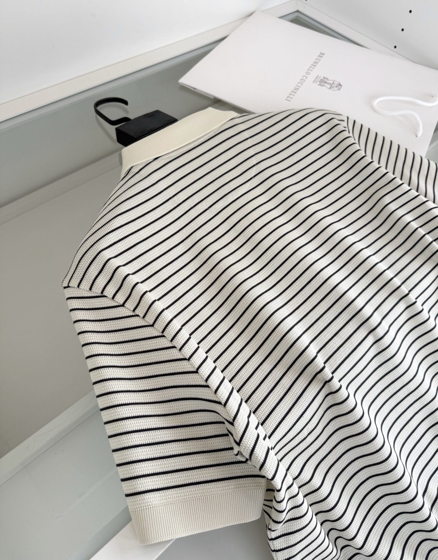 “[브루넬로 쿠치넬리] V넥 스트라이프 니트 숏 슬리브 티셔츠 (3 COLORS)”의 첫 상품평을 남겨 주세요 응답 취소