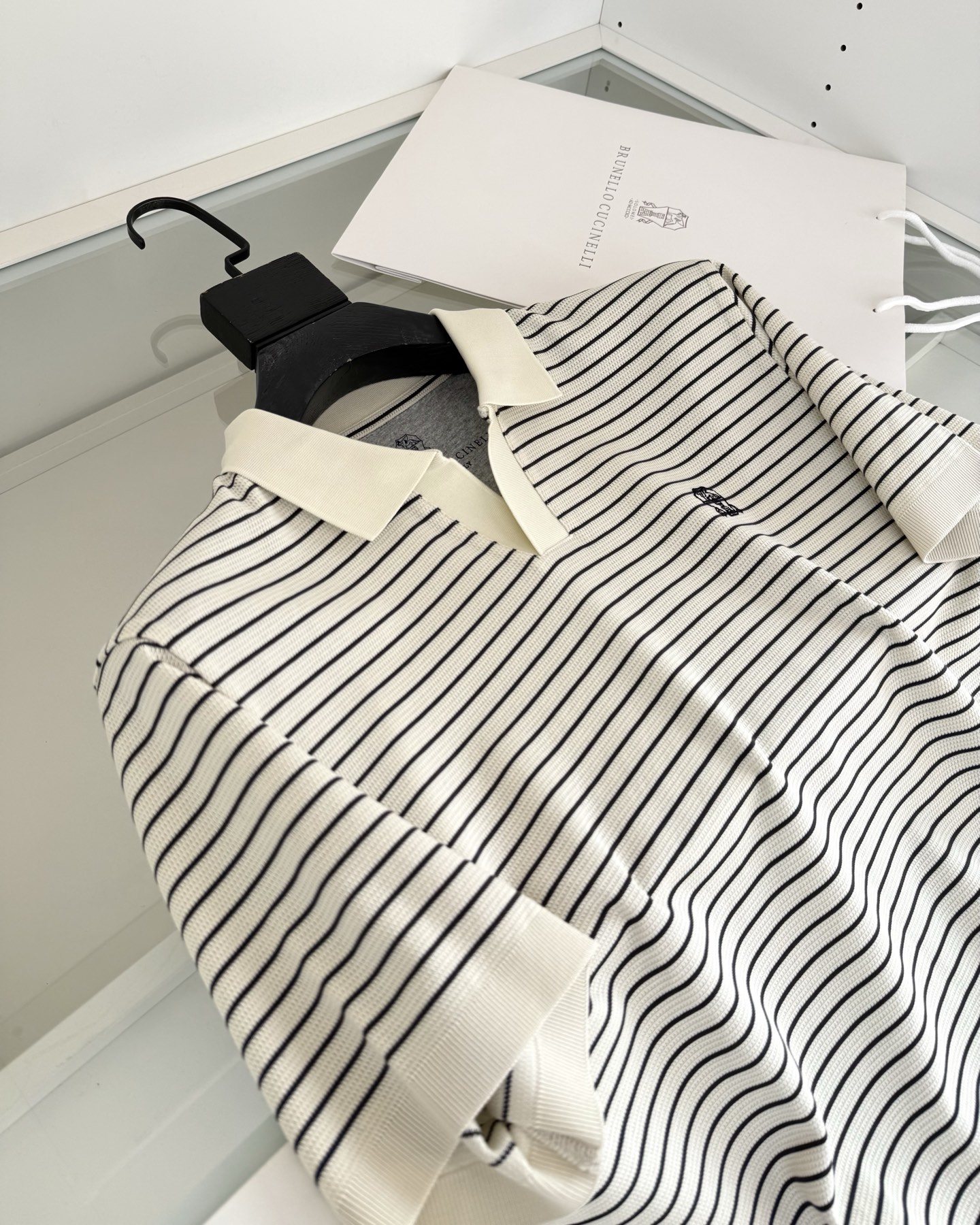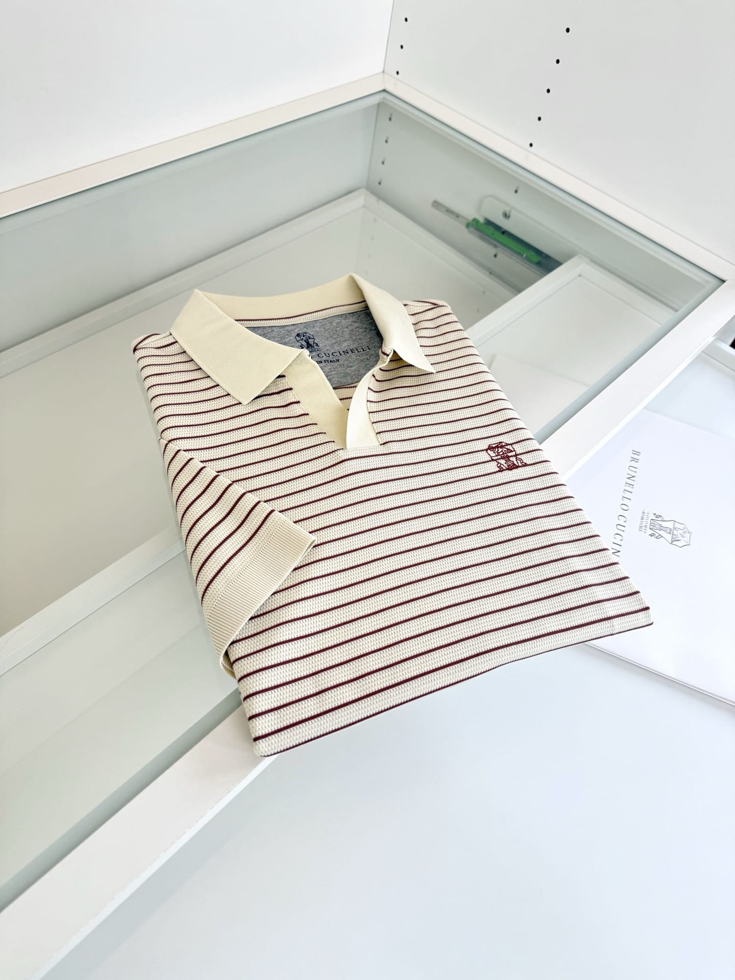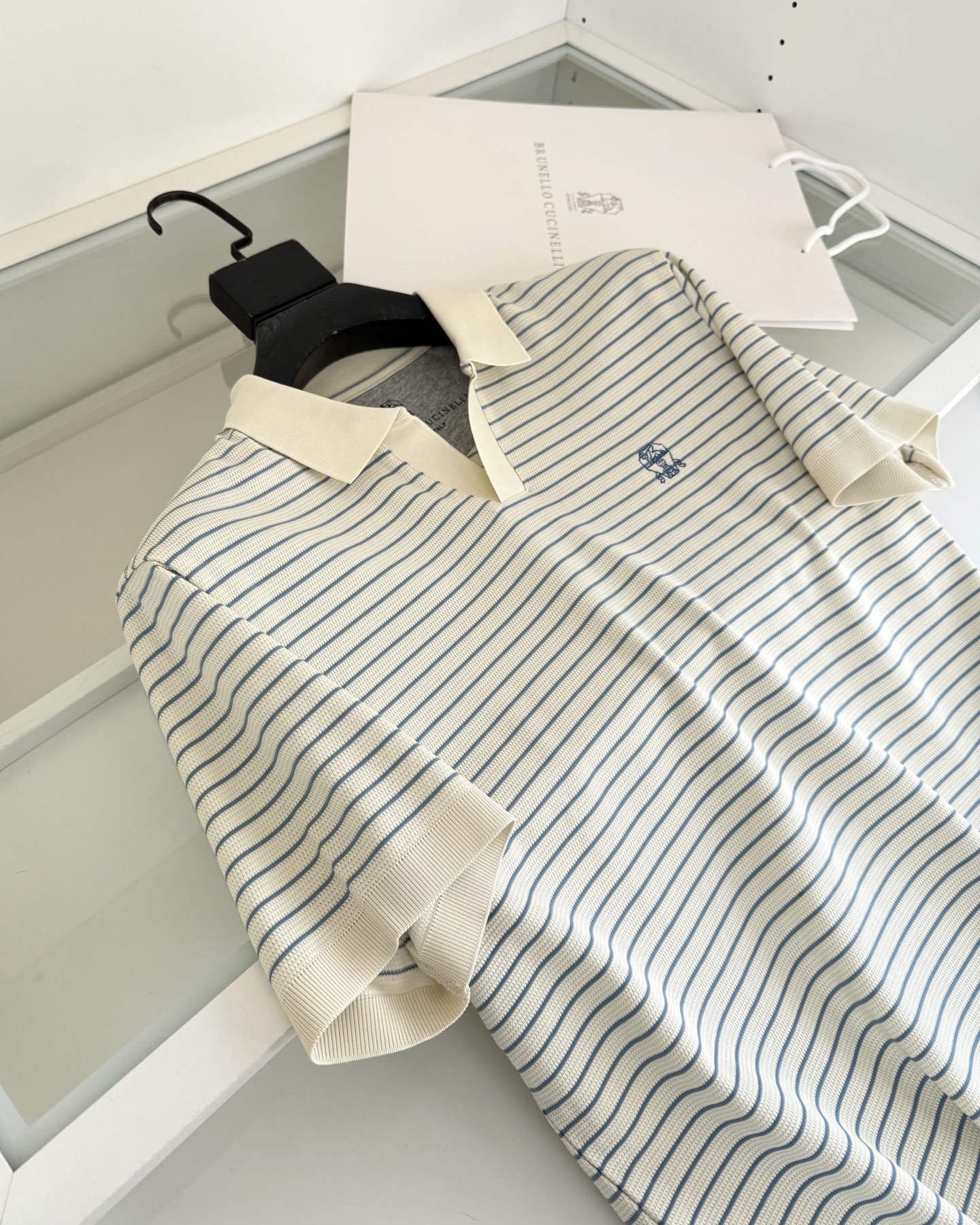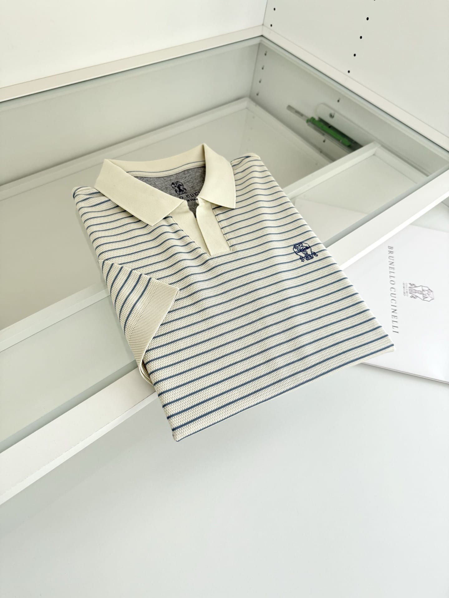 “[브루넬로 쿠치넬리] V넥 스트라이프 니트 숏 슬리브 티셔츠 (3 COLORS)”의 첫 상품평을 남겨 주세요 응답 취소