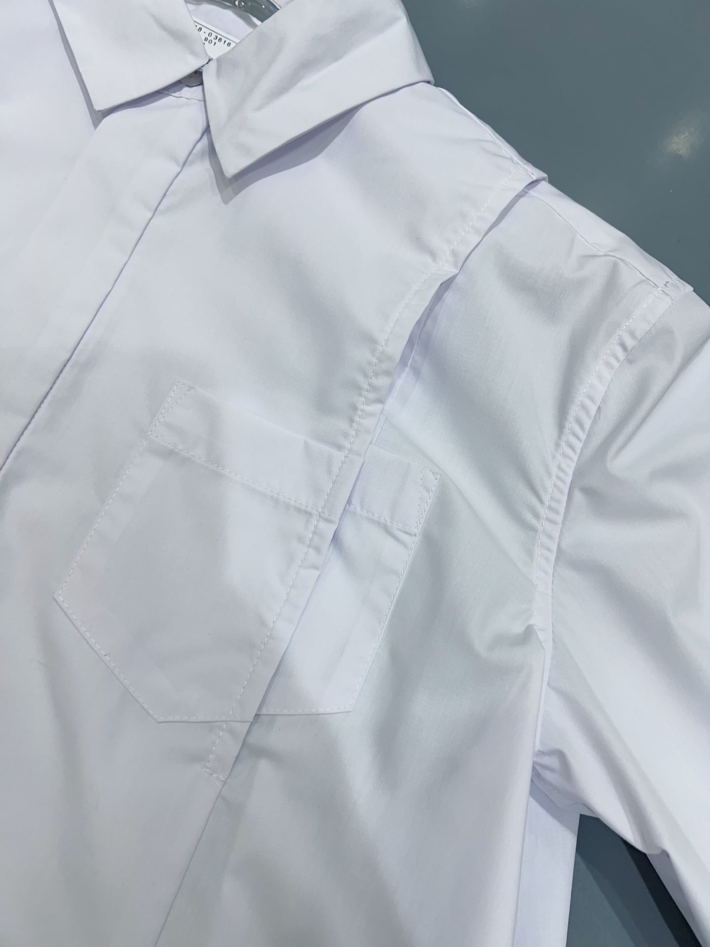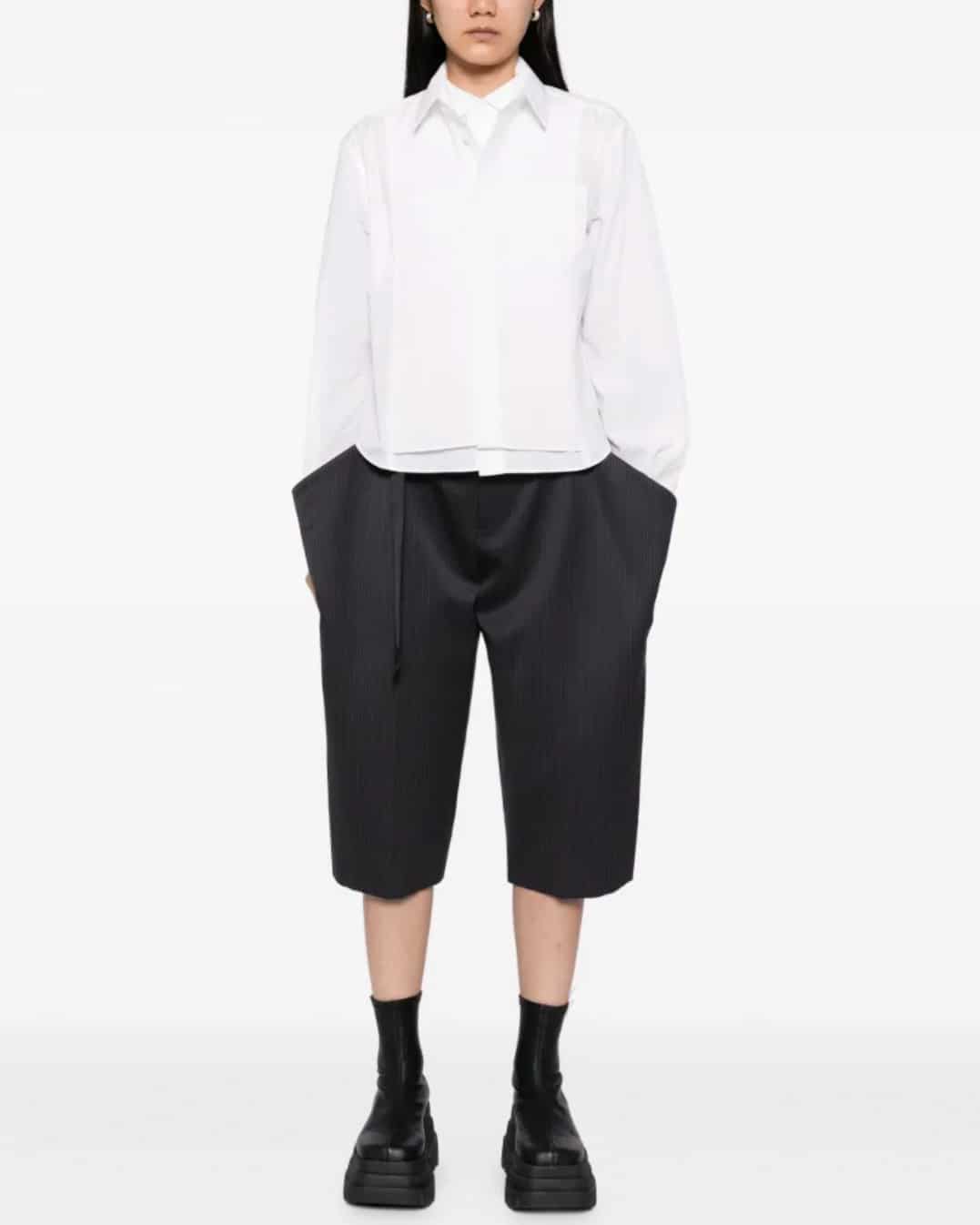 디자인 / 핏: 사카이 특유의 해체주의적 감성이 돋보이는 더블 레이어드 스트라이프 셔츠입니다. 클래식한 화이트 셔츠를 베이스로 전면에 과감한 레이어드 디테일을 더해 입체적이고 풍성한 실루엣을 완성했습니다.