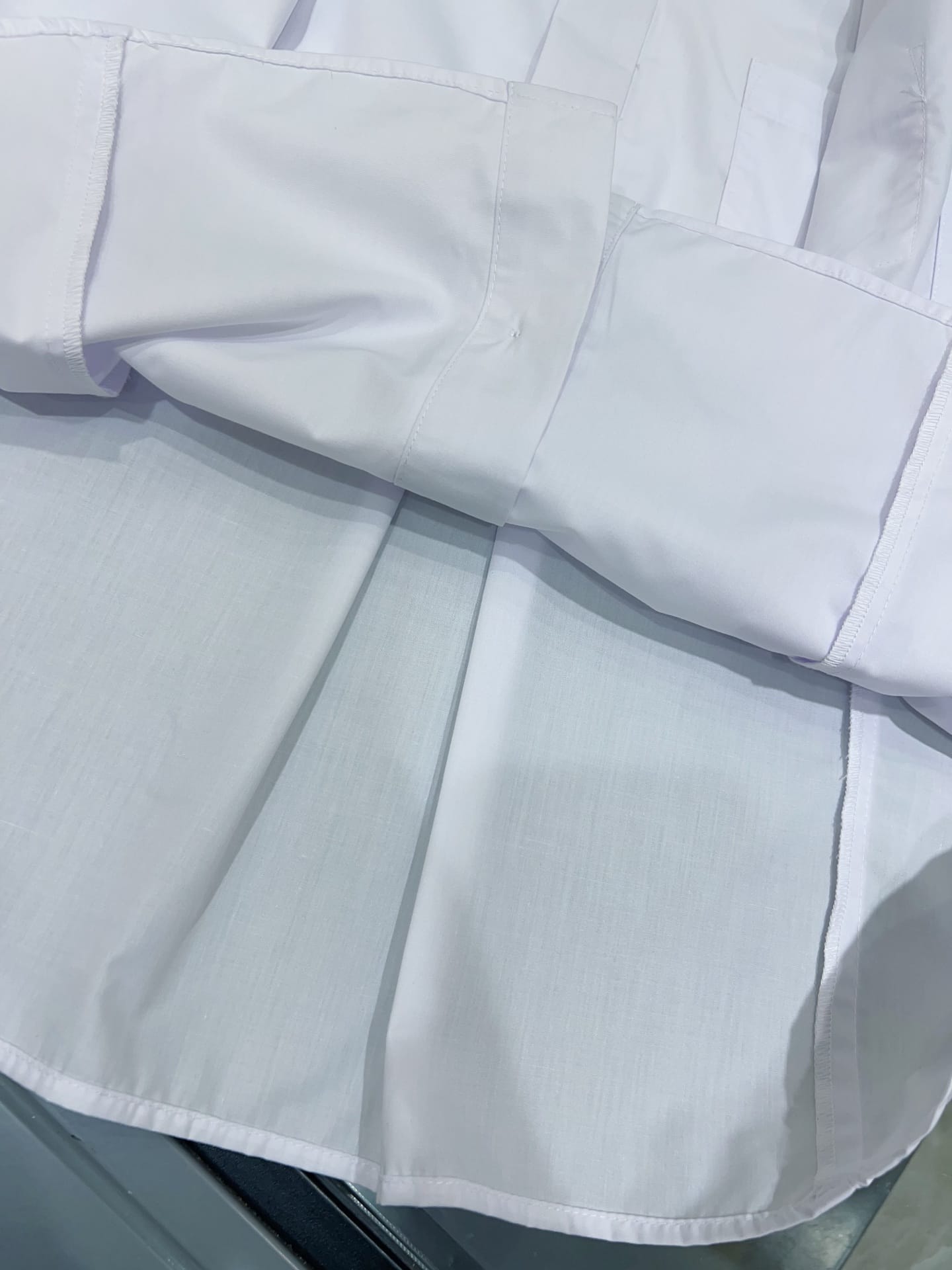 폴리에스터와 코튼이 혼방된 고밀도 셔츠 원단을 사용하여 구김이 적고 관리가 용이합니다.