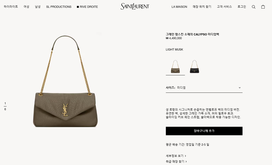 “[생로랑] 그레인 램스킨 소재의 CALYPSO 미디엄백 800916”의 첫 상품평을 남겨 주세요 응답 취소
