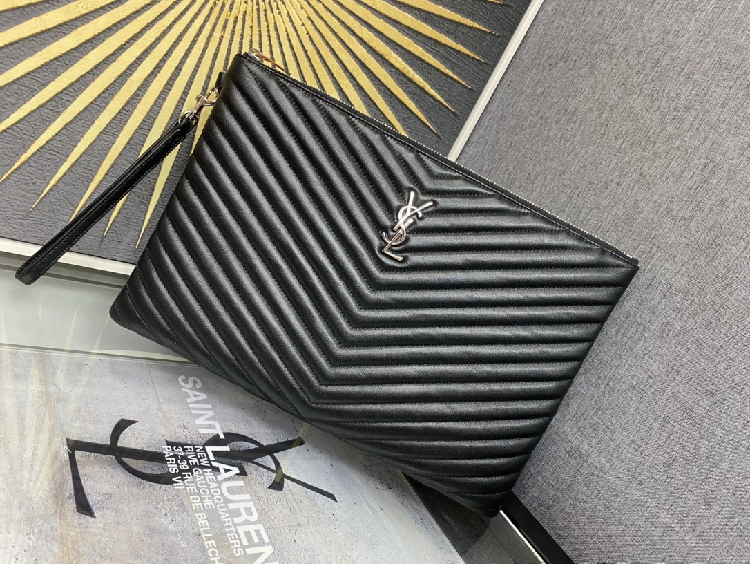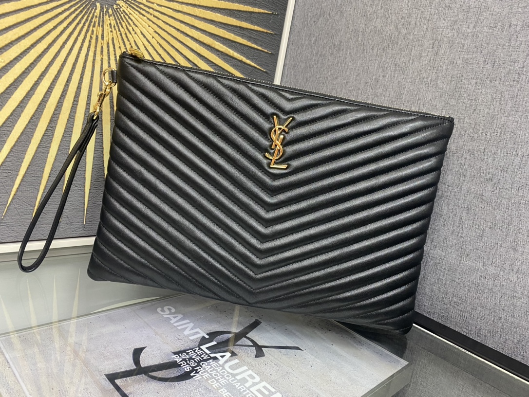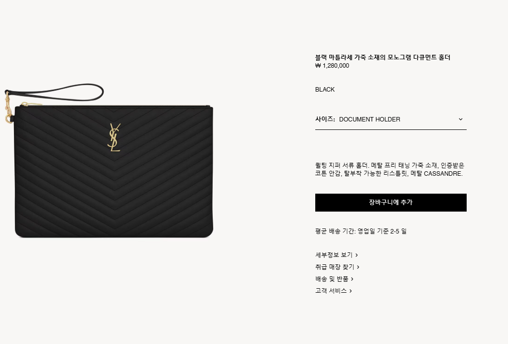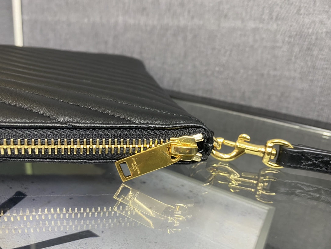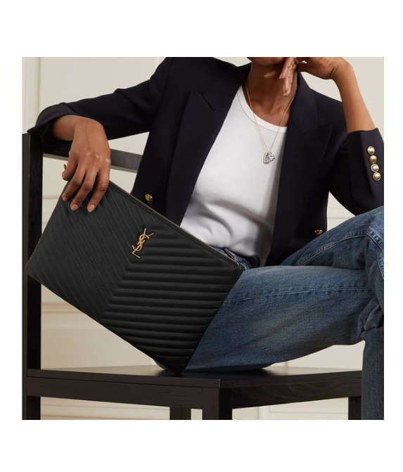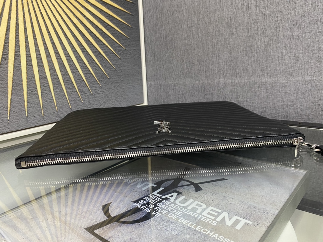 [생로랑] 마틀라세 가죽 소재의 모노그램 다큐먼트 홀더 파우치 은장/ 금장440222