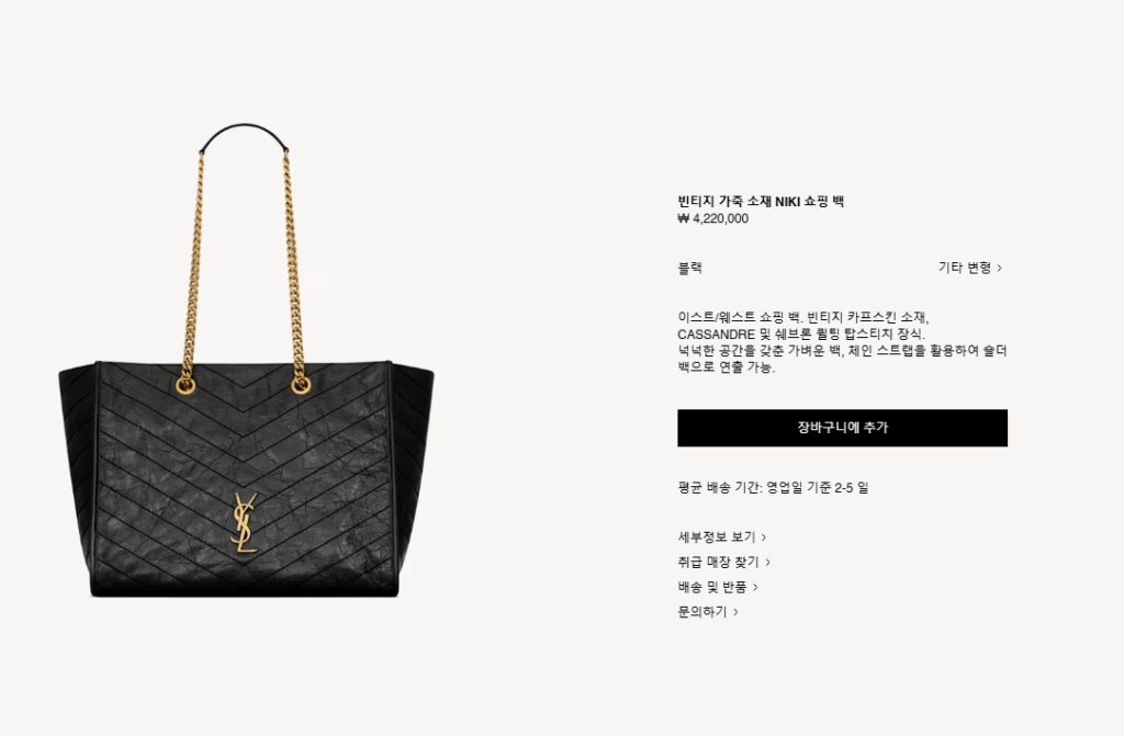“[생로랑] 빈티지 가죽 소재 니키 쇼핑 백 미디움 8711510 (3 COLOR)”의 첫 상품평을 남겨 주세요 응답 취소