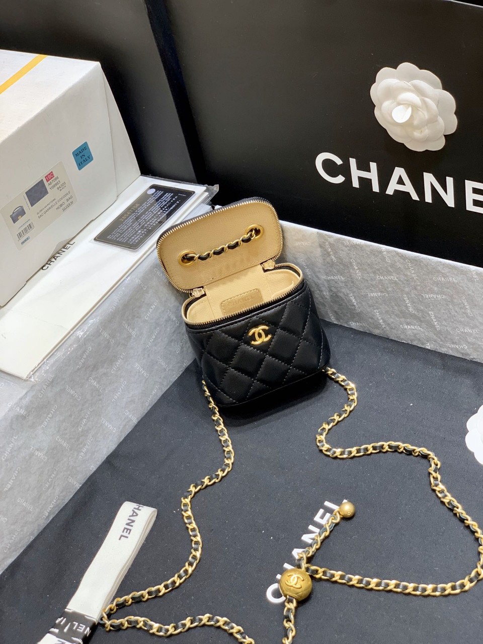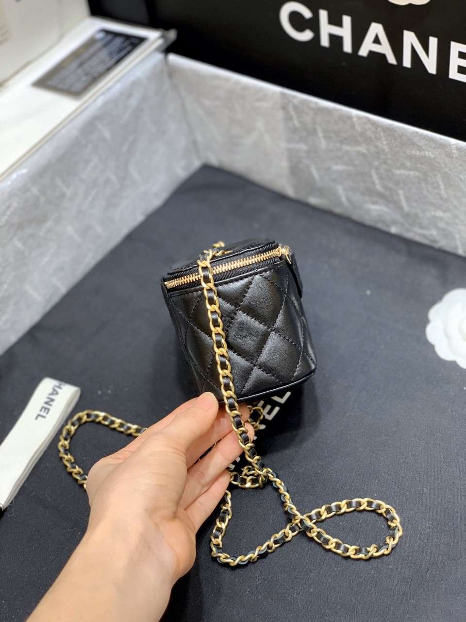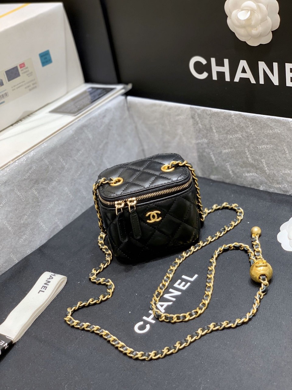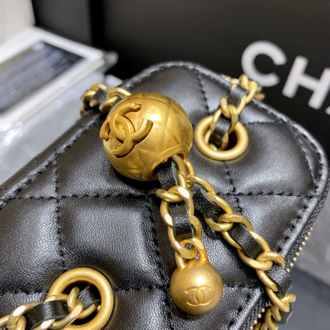 【양가죽】 베니티 골드볼 미니백