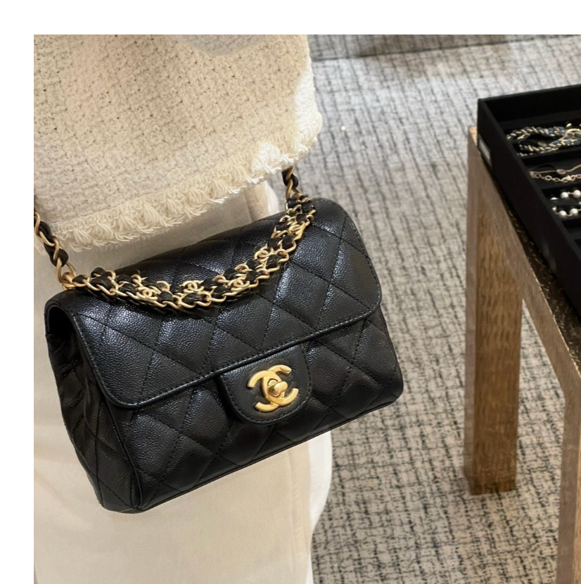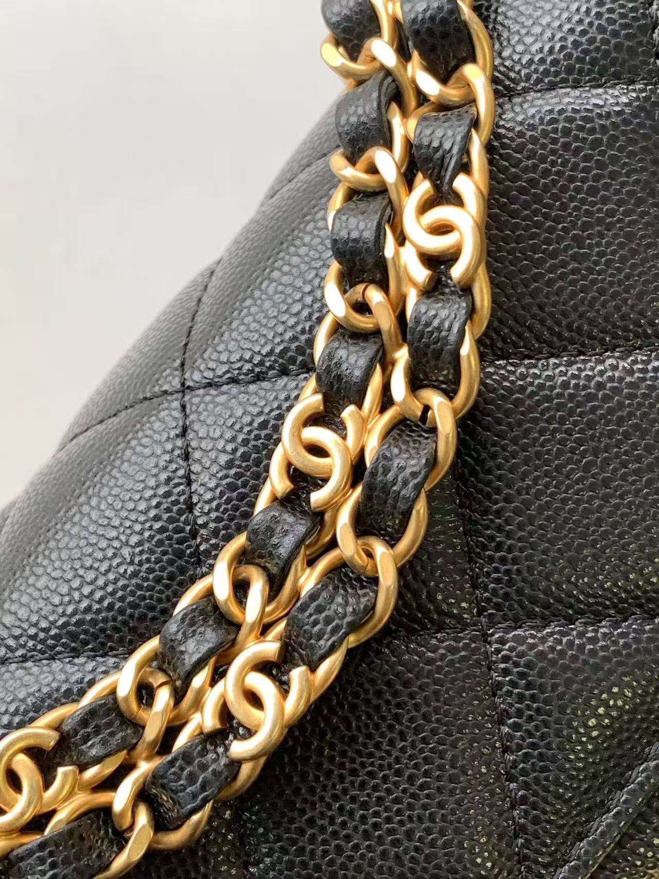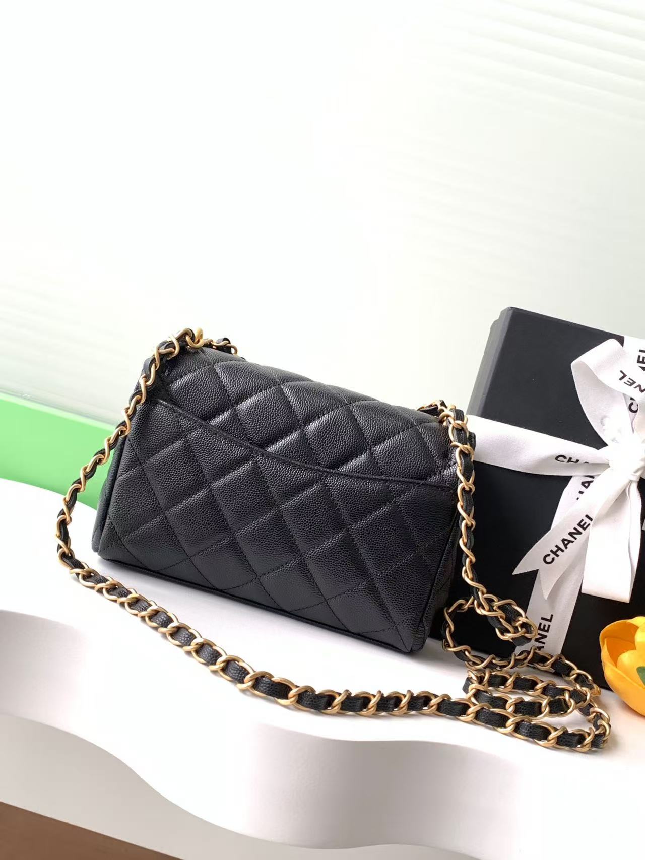[샤넬] 체인 플랩백 미니 캐비어 블랙 골드 AS5239