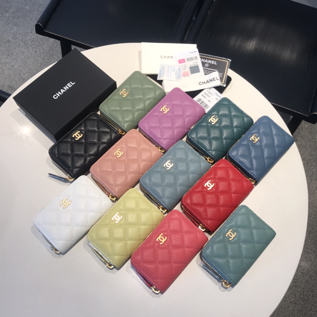 [샤넬] 클래식 지퍼돌이 카드지갑 캐비어