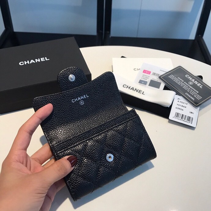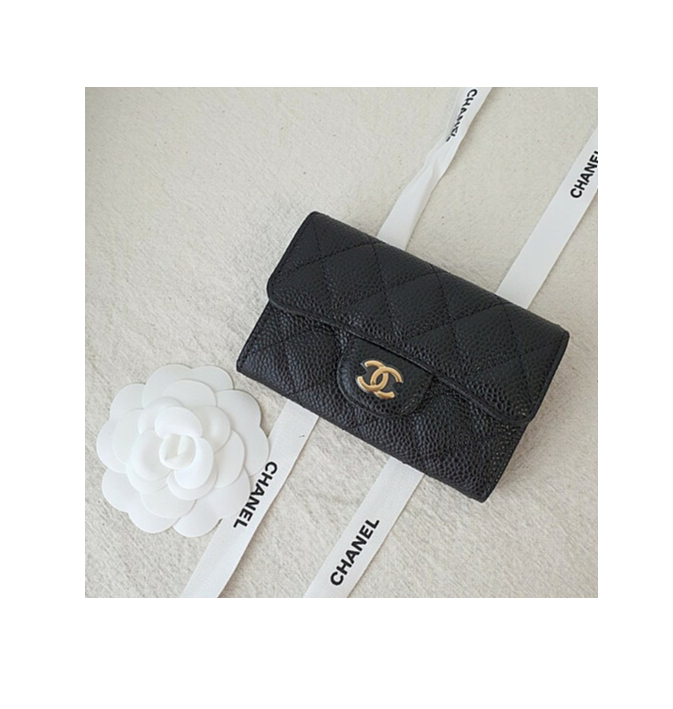 [샤넬] 클래식 똑딱이 플랩 카드 지갑 캐비어 블랙 AP0214