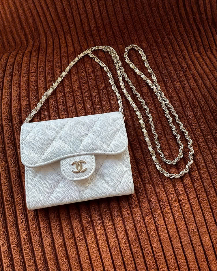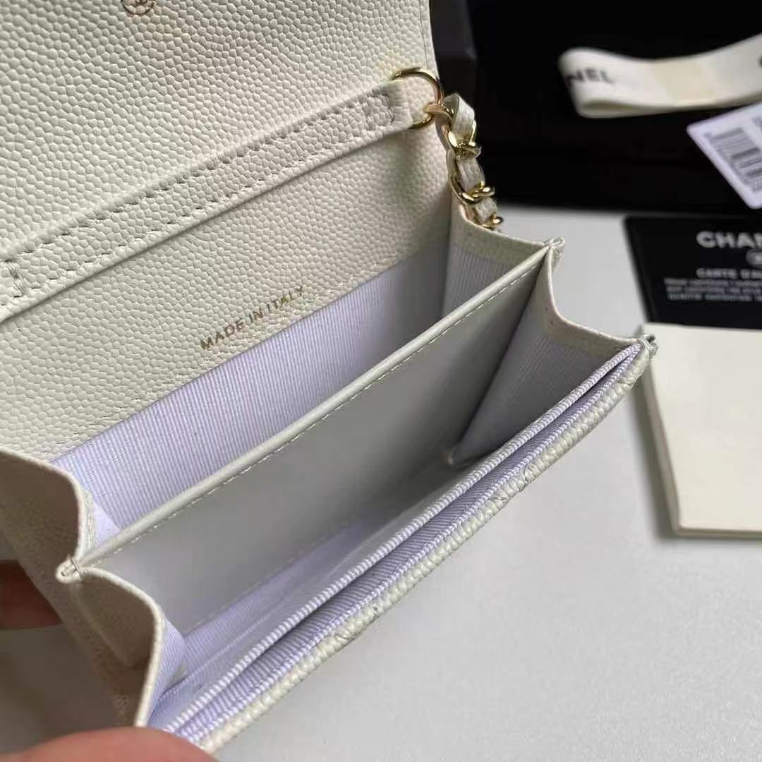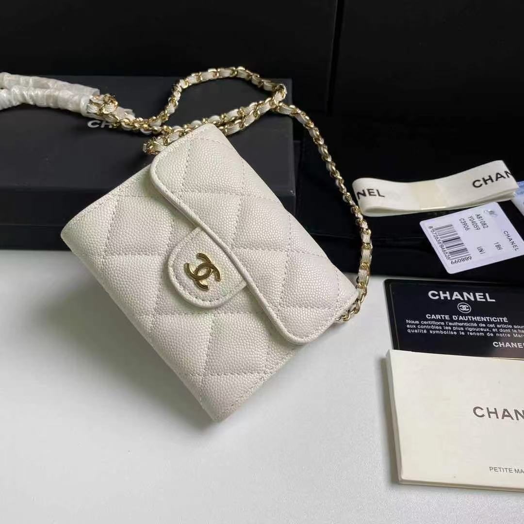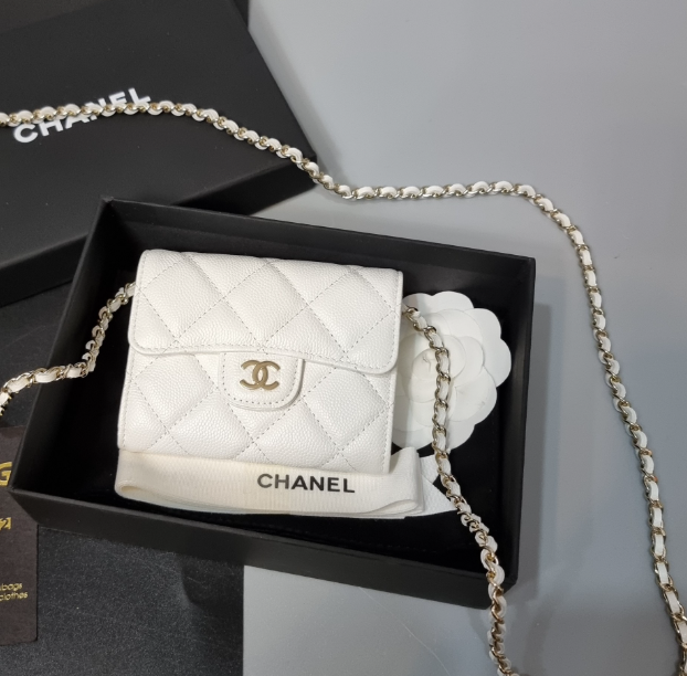 [샤넬] 클래식 체인 달린 미니백 화이트 금장 AP0238