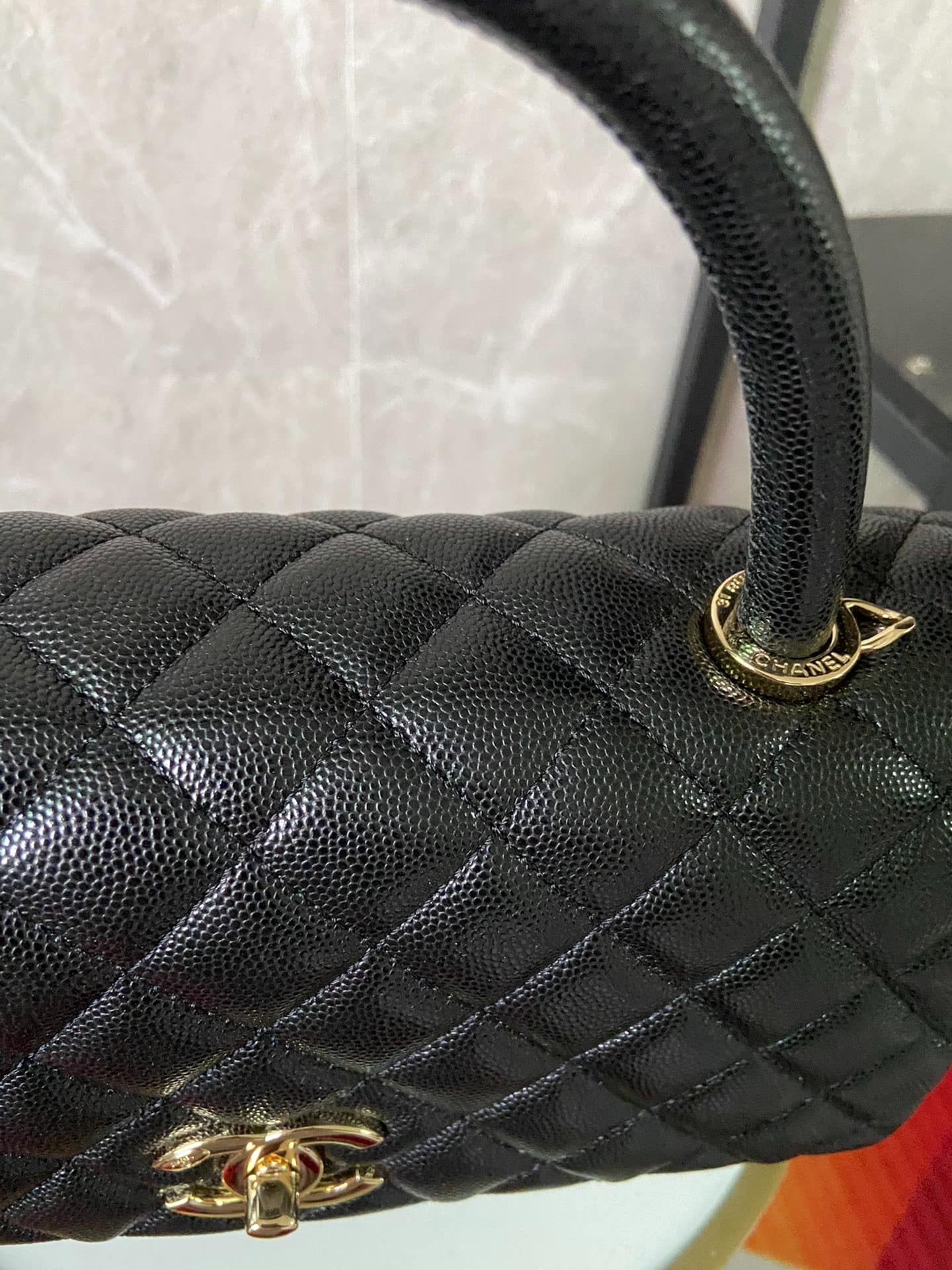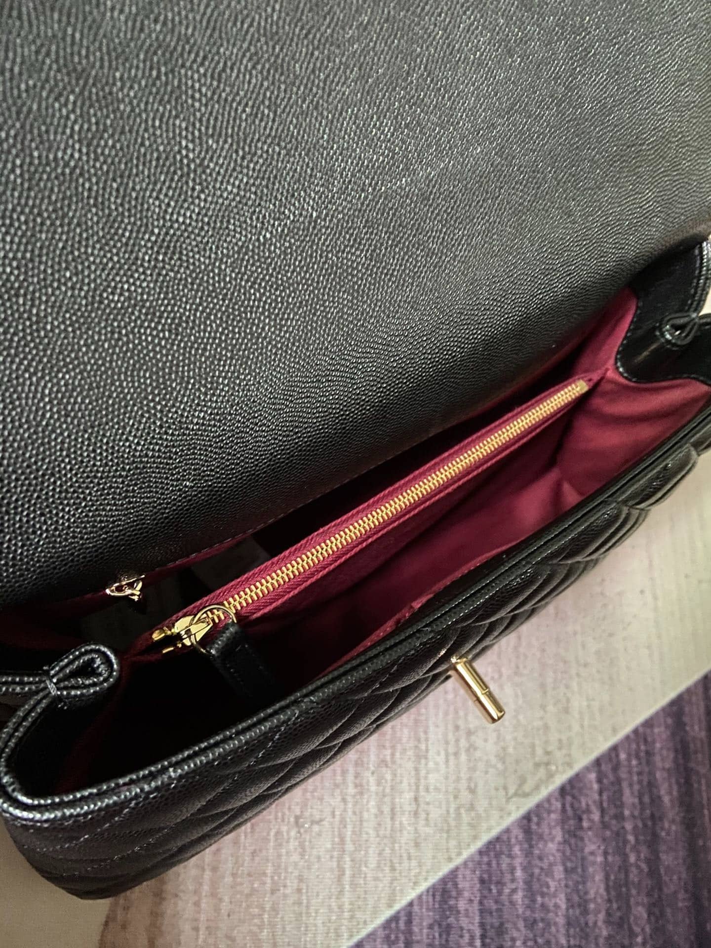 “[샤넬] 핸들 장식의 미디엄 플랩 백 캐비어 금장 메탈 블랙 A92991”의 첫 상품평을 남겨 주세요 응답 취소