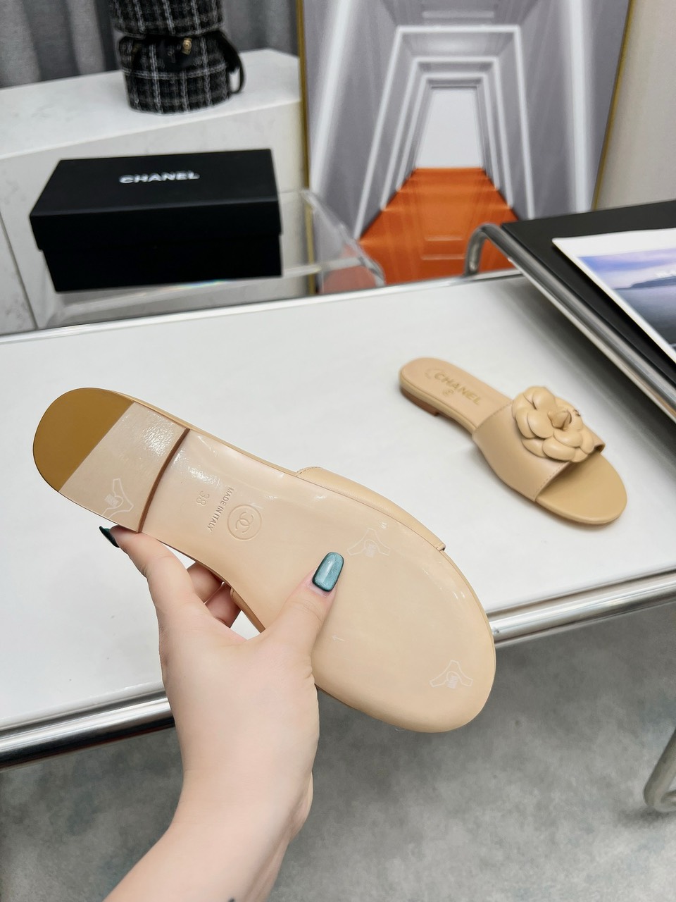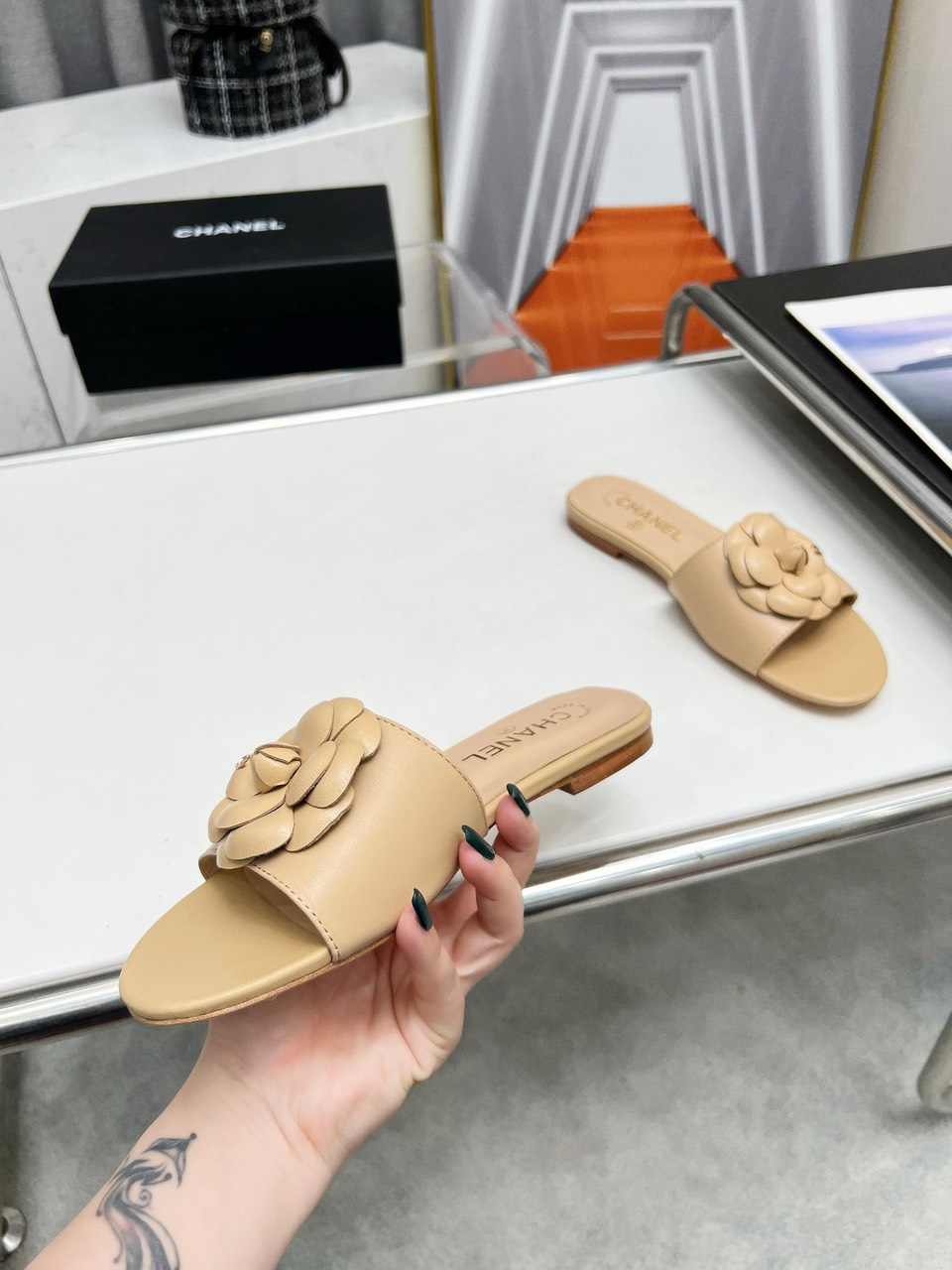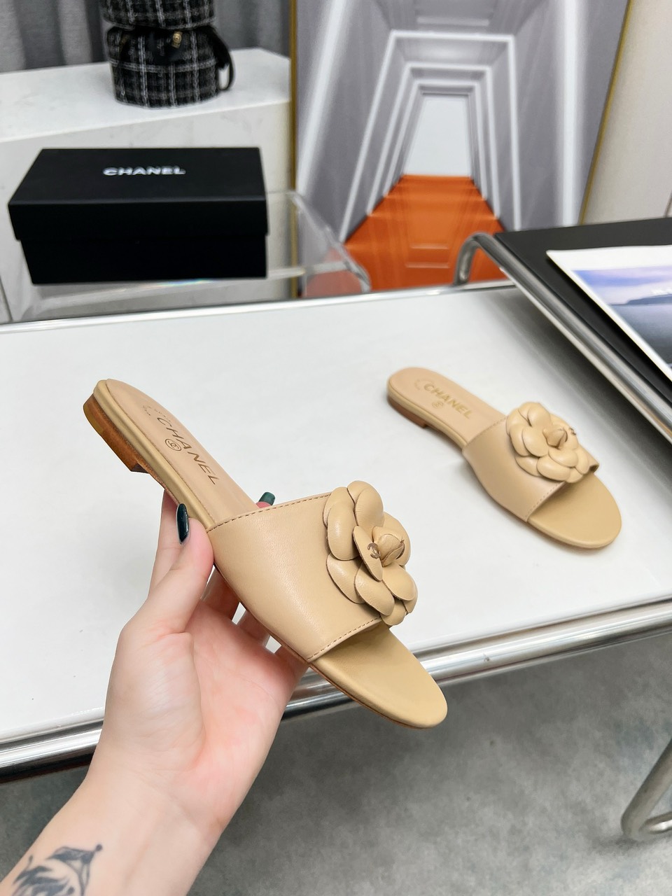 [샤넬] 24S 까멜리아 뮬 램스킨 블랙 G45499 X01000 94305