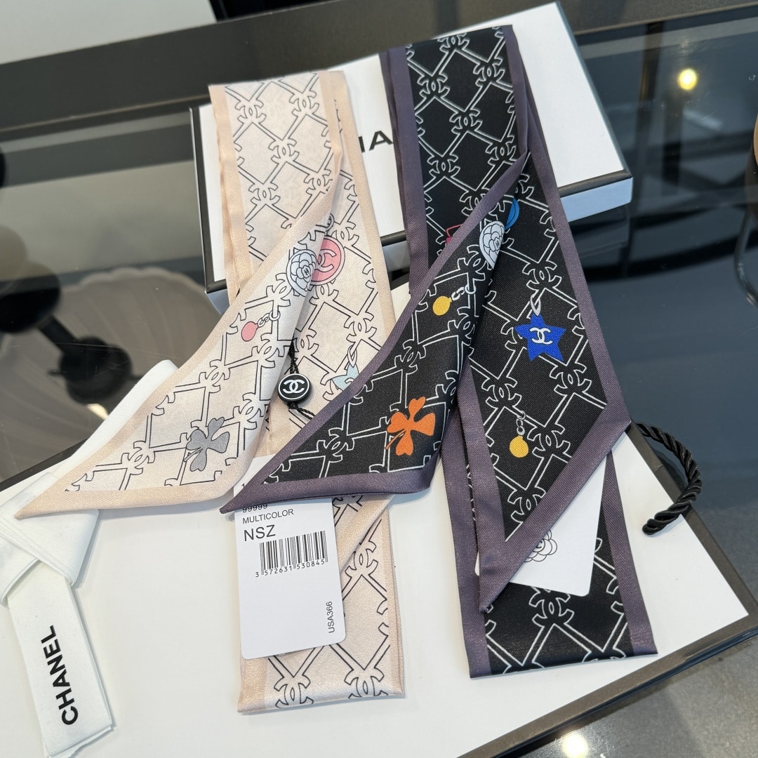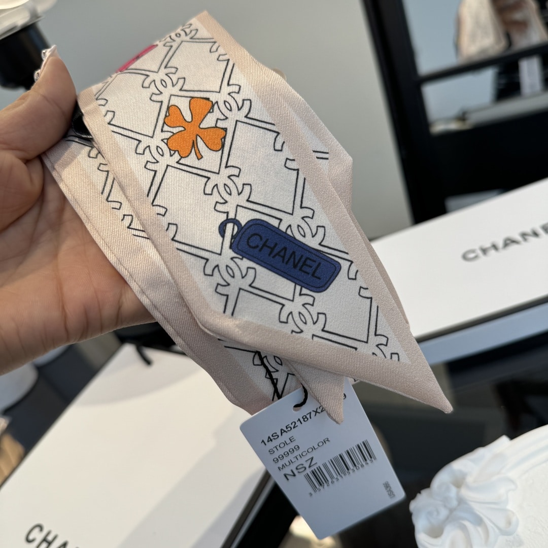“[샤넬] CC 로고 참 실크 헤어 밴드 스카프 (2 COLORS)”의 첫 상품평을 남겨 주세요 응답 취소