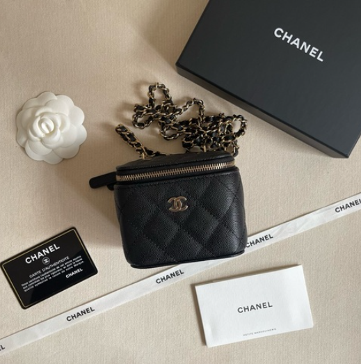 [샤넬] 미니 베니티백 캐비어 블랙 체인 금장 AP1340
