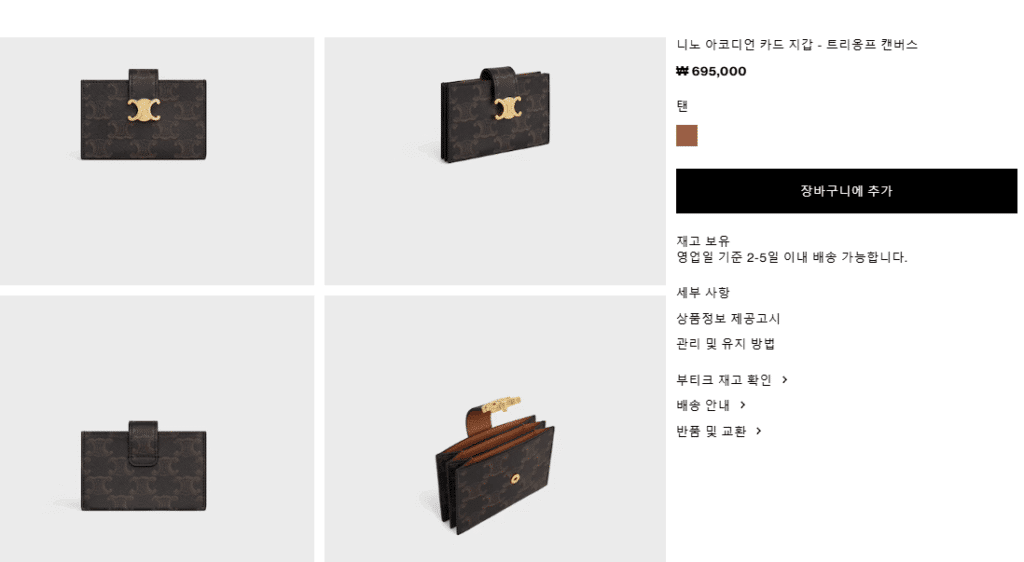 주의사항: 의류 및 신발 카테고리는 재고 상황에 따라 입고까지 일주일 이상 추가 소요될 수 있으므로, 가방/지갑류보다 시간적 여유를 두고 주문해 주시길 권장합니다.