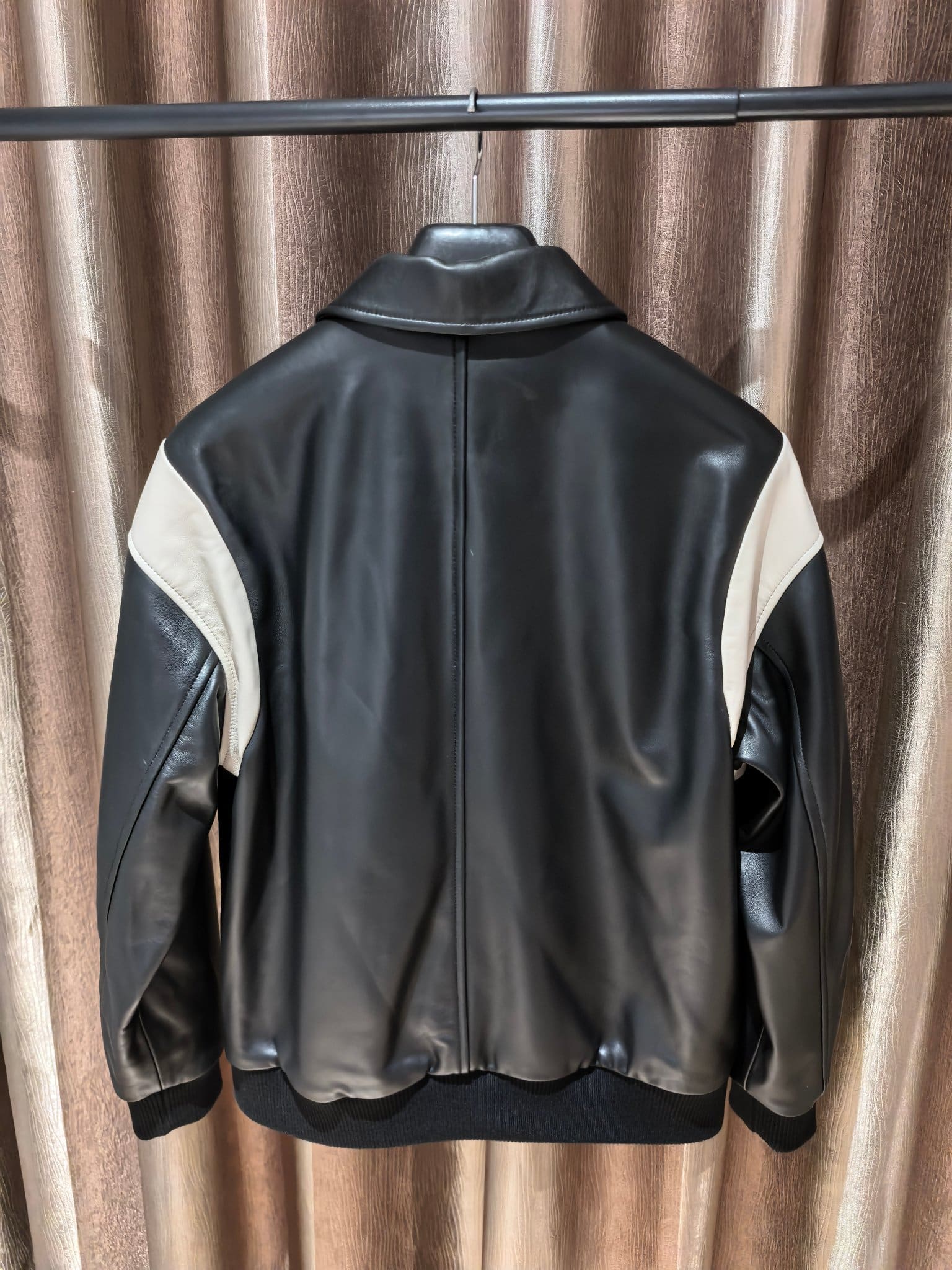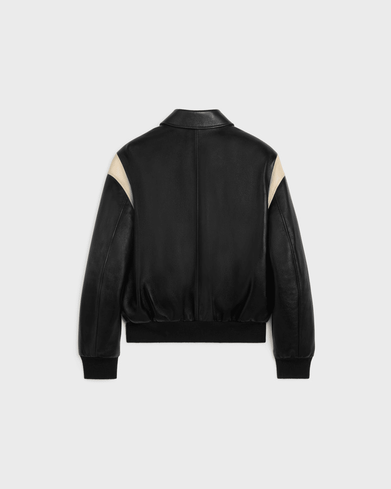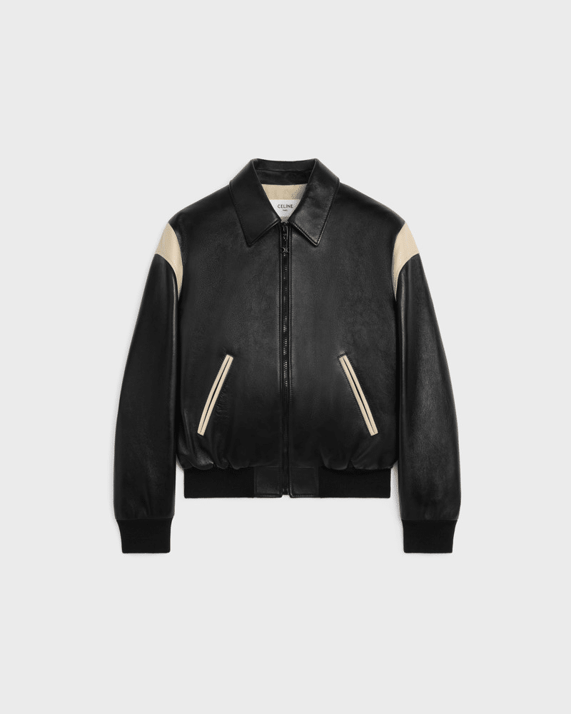 밑단과 소매에는 니트 립 마감을 적용해 안정적인 핏과 편안한 착용감을 제공하며, 절제된 디자인 속에서도 CELINE 특유의 세련된 프렌치 감성이 돋보인다. 클래식한 대학 스타일과 럭셔리 레더 소재가 조화를 이루는 하이엔드 남성 아우터로, 캐주얼부터 스마트 캐주얼 스타일링까지 폭넓게 활용 가능한 아이템이다.