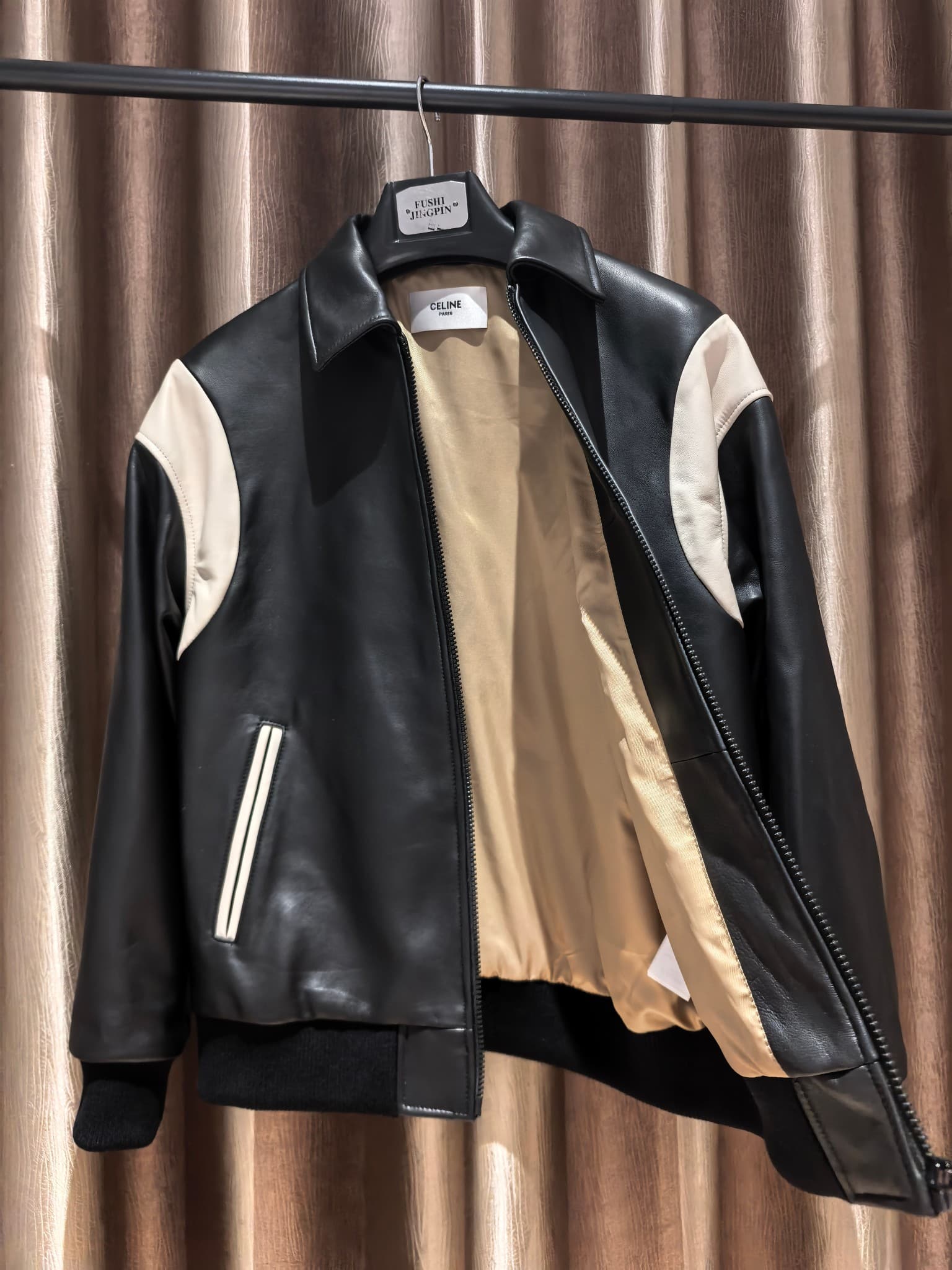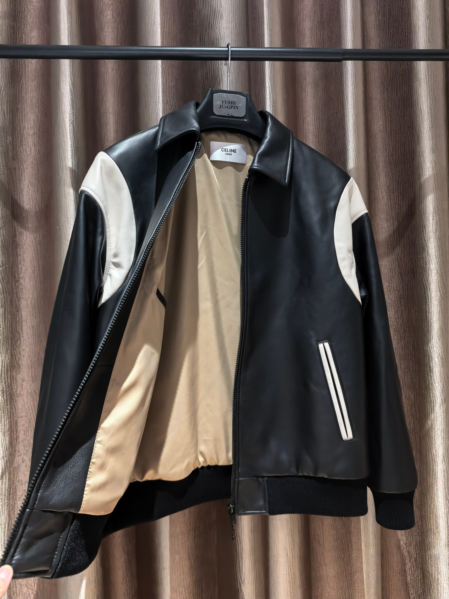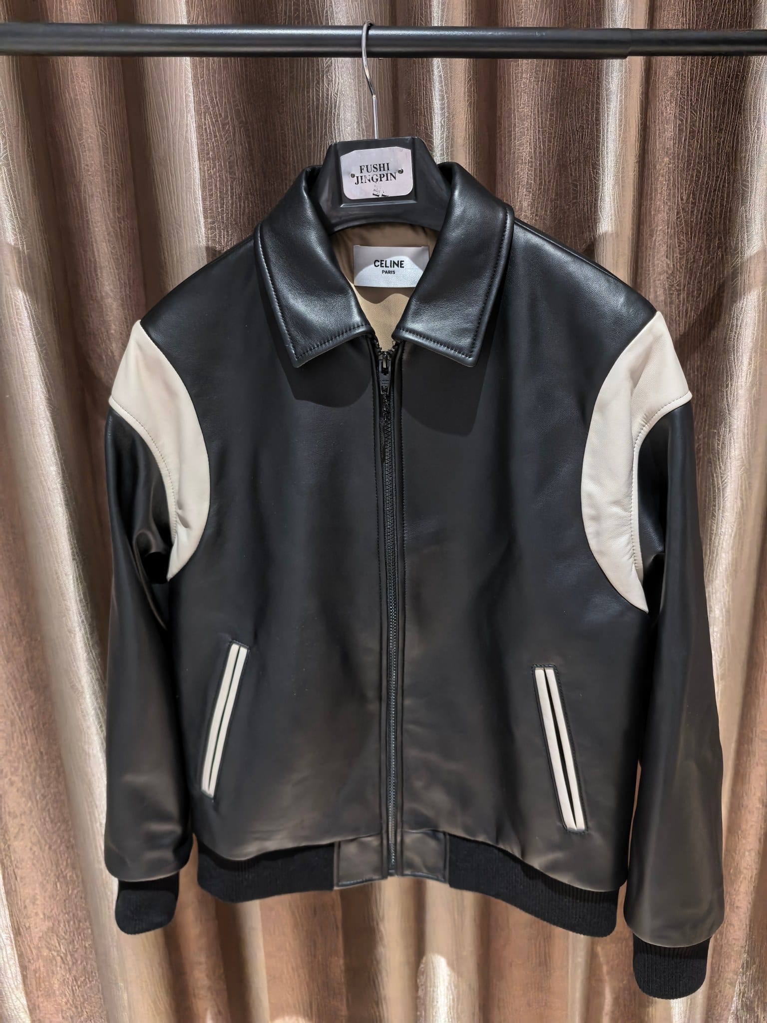 밑단과 소매에는 니트 립 마감을 적용해 안정적인 핏과 편안한 착용감을 제공하며, 절제된 디자인 속에서도 CELINE 특유의 세련된 프렌치 감성이 돋보인다. 클래식한 대학 스타일과 럭셔리 레더 소재가 조화를 이루는 하이엔드 남성 아우터로, 캐주얼부터 스마트 캐주얼 스타일링까지 폭넓게 활용 가능한 아이템이다.